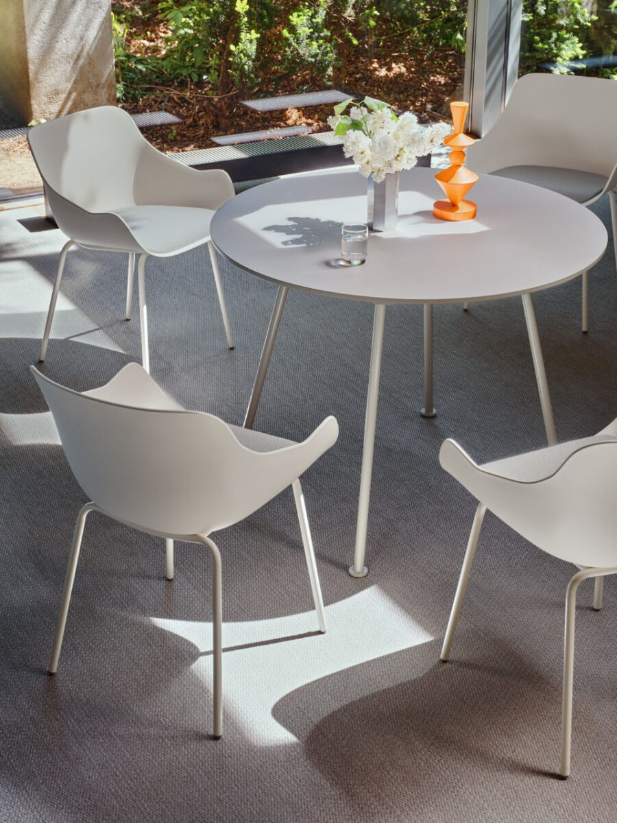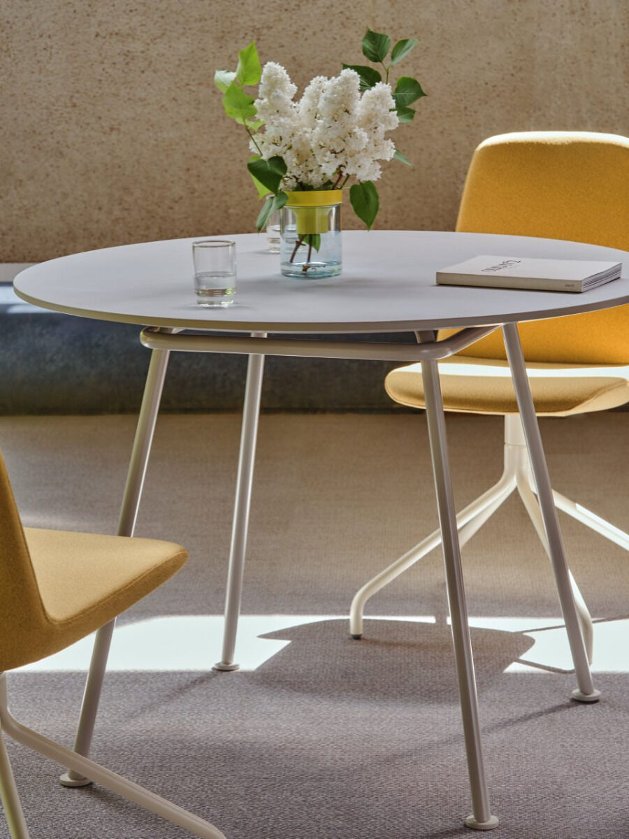 Okrúhly stôl New School je súčasťou kolekcie stoličiek New School, navrhnutý štúdiom Form Us With Love. Dizajnéri využili charakteristický rám z ohnutých rúrok, na ktorý pridali okrúhlu dosku, čo umožňuje všestranné využitie v rôznych interiéroch. Jednoduchá forma a intenzívne farby robia z tohto stola ideálny doplnok do kancelárií, konferenčných miestností či reštaurácií.