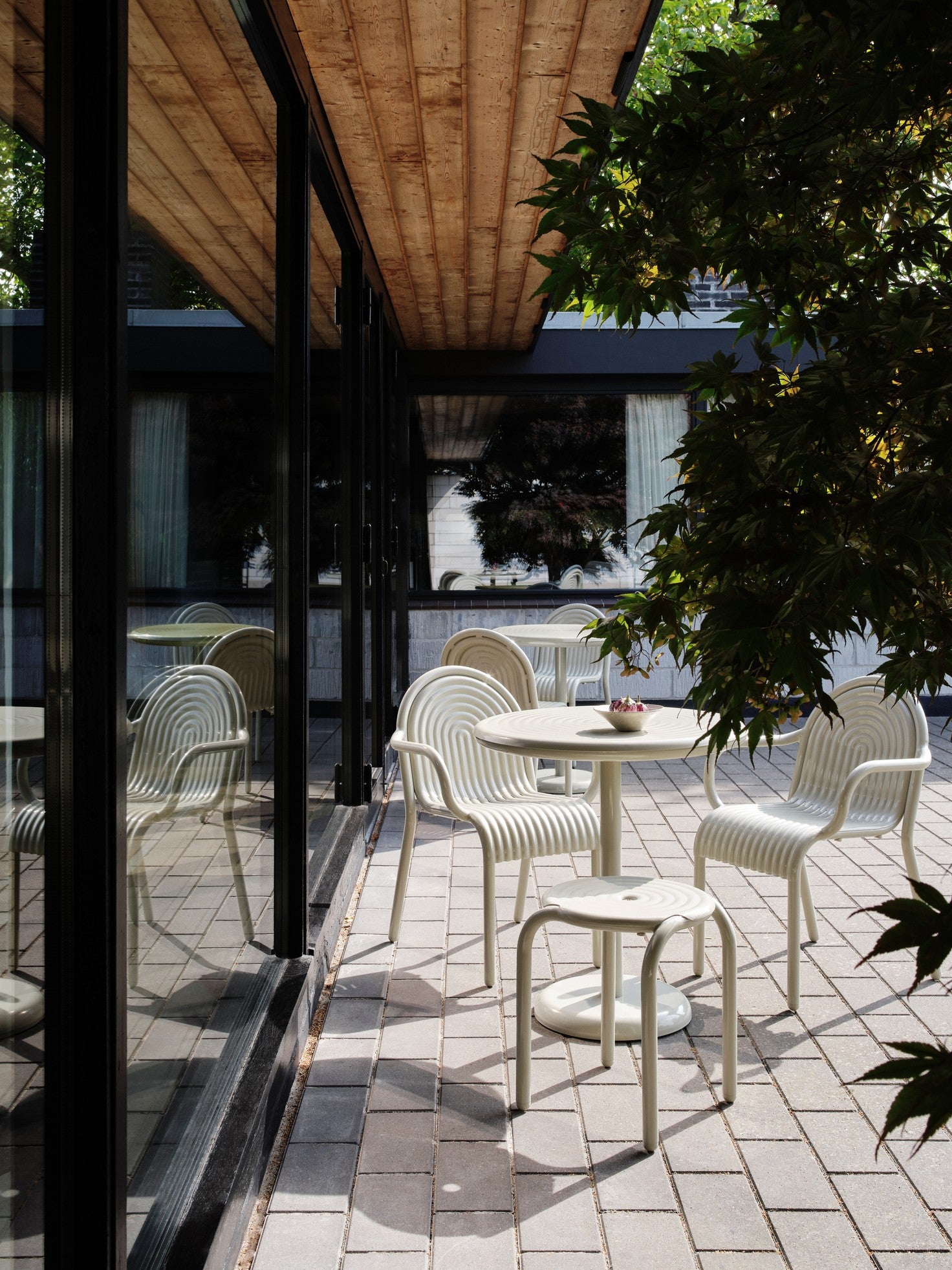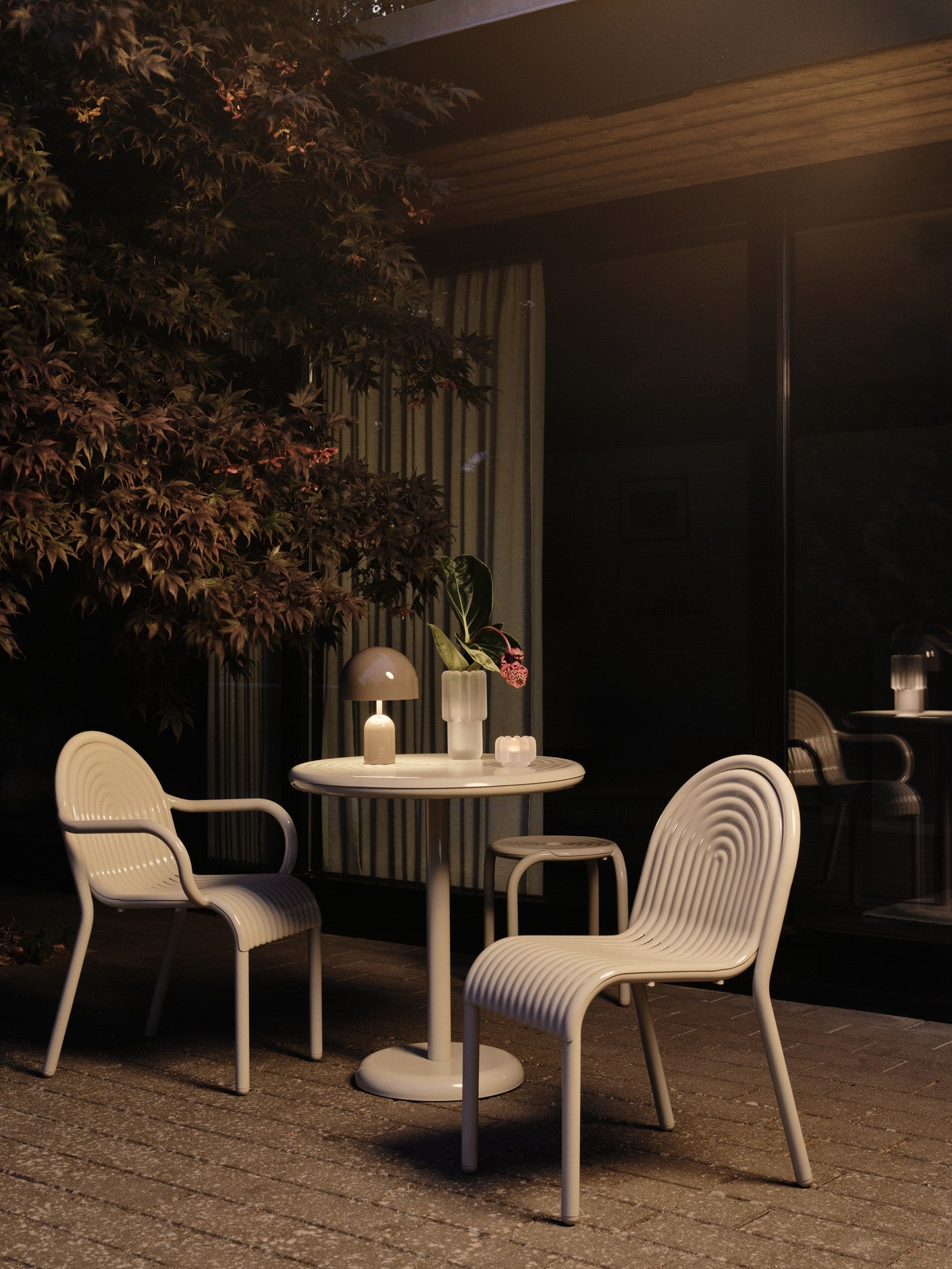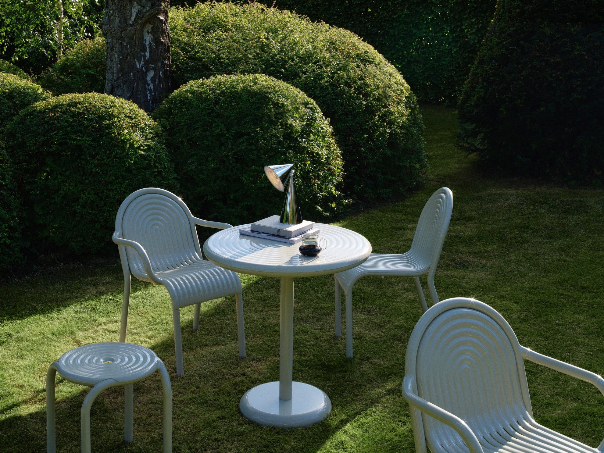 Zahradní stůl Groove je elegantní volba pro moderní venkovní prostory, která spojuje sochařskou formu s vysokou funkčností. Tento kulatý stůl se vyznačuje charakteristickými, zvýšenými drážkami inspirovanými estetikou art deco, které mu dodávají výrazný, dekorativní charakter. Vyroben z hliníku nejvyšší kvality, venkovní stůl Groove je navržen s ohledem na trvanlivost a každodenní používání venku, bez ohledu na povětrnostní podmínky.