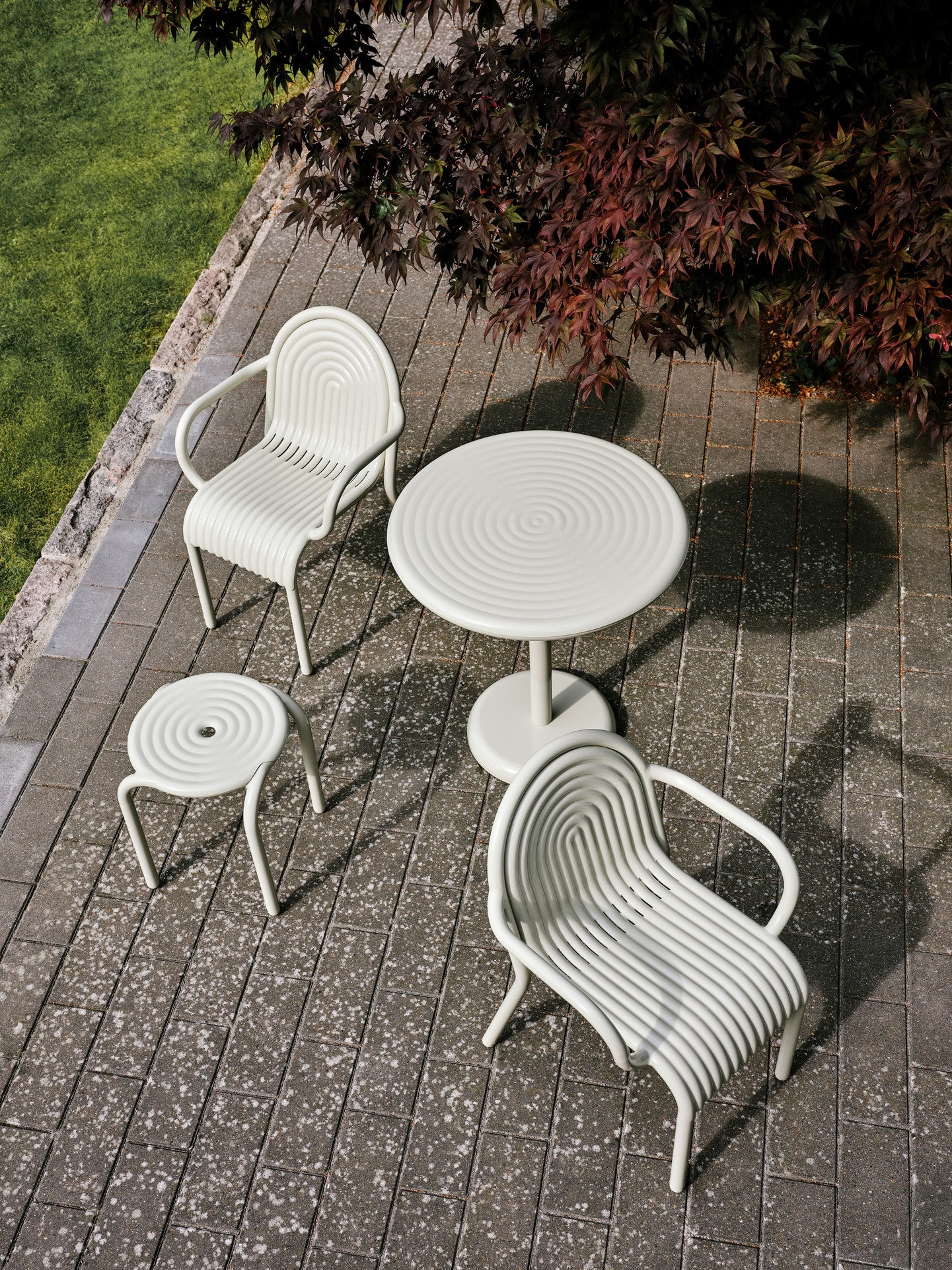 Kulatý venkovní stůl GROOVE zlomená bílá