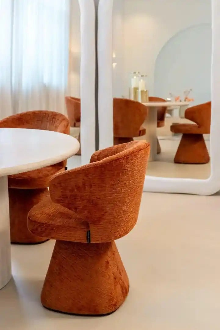 Elegantní jídelní stůl Renaissance s kulatou deskou vyrobenou z přírodního travertinu je spojení luxusu a moderního designu. Silná deska o tloušťce 3,6 cm je umístěna na stabilní, sochařské základně z železa a MDF, což vytváří harmonickou a vyváženou formu. Ušlechtilá struktura kamene přináší do interiéru přirozené teplo a jedinečný charakter.