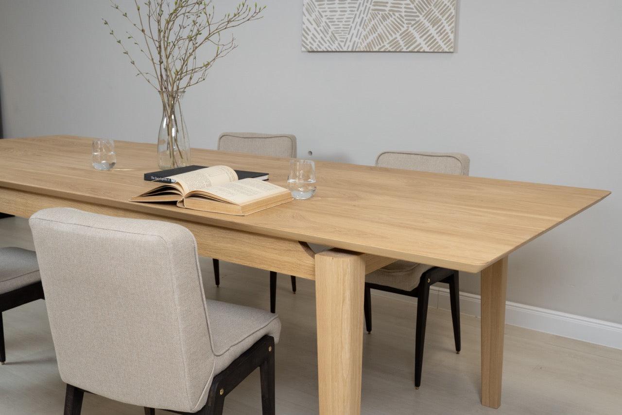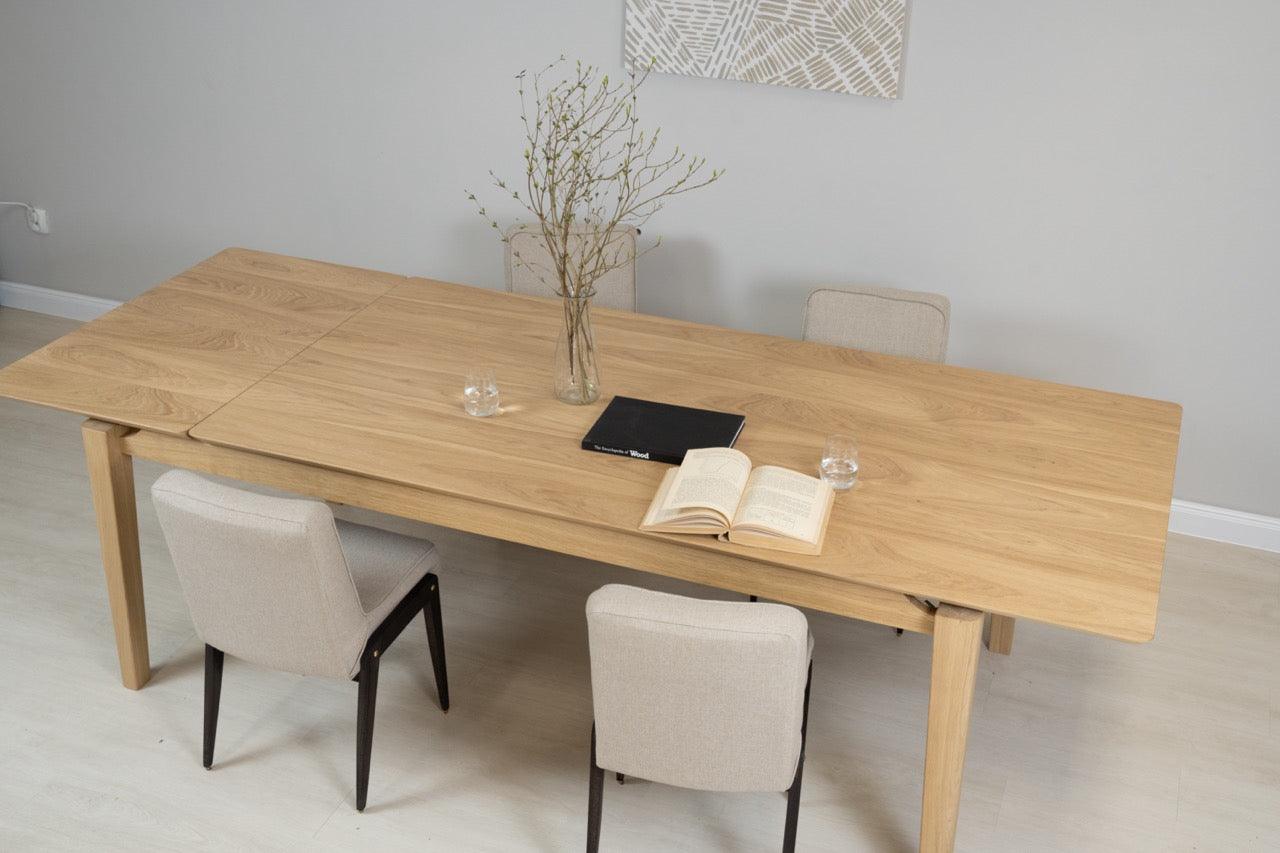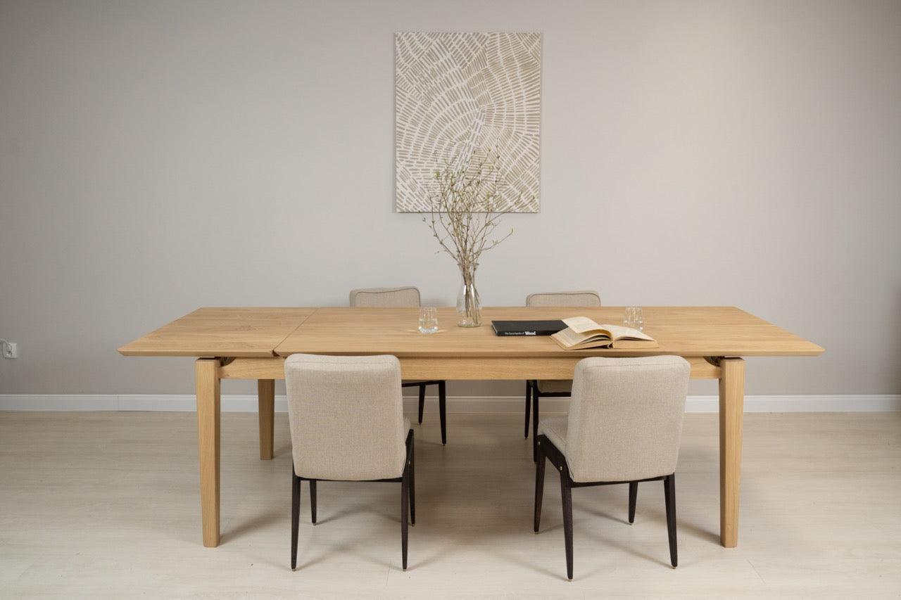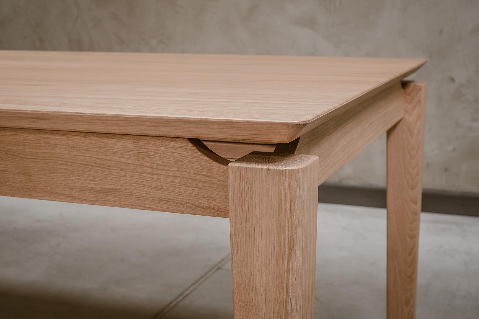 Vyrobený z masivního dřeva, s viditelným přirozeným vzorem, se stává centrálním bodem domova, který zve k společnému trávení času. Kromě nadčasového designu a vynikající kvality materiálů byl stůl Chamfer navržen tak, aby splňoval mnoho funkcí. Pomocí jednoho pohybu lze výrazně zvětšit jeho desku, což umožňuje oslavovat společné chvíle ve větším kruhu.