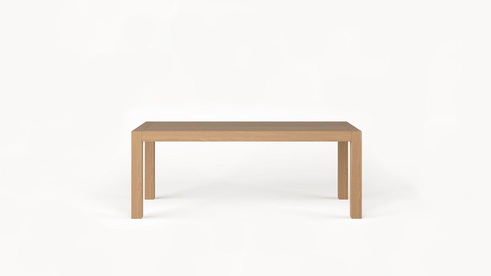 Deska o tloušťce 9 cm je pevně spojena s nohami a příčkou o stejné tloušťce. Nohy mohou být spojeny s příčkou třemi způsoby: čepově, na úkos a na styku. V rozkládací verzi má stůl skrytý systém rozkládání a vložky, což mu dodává funkčnost.