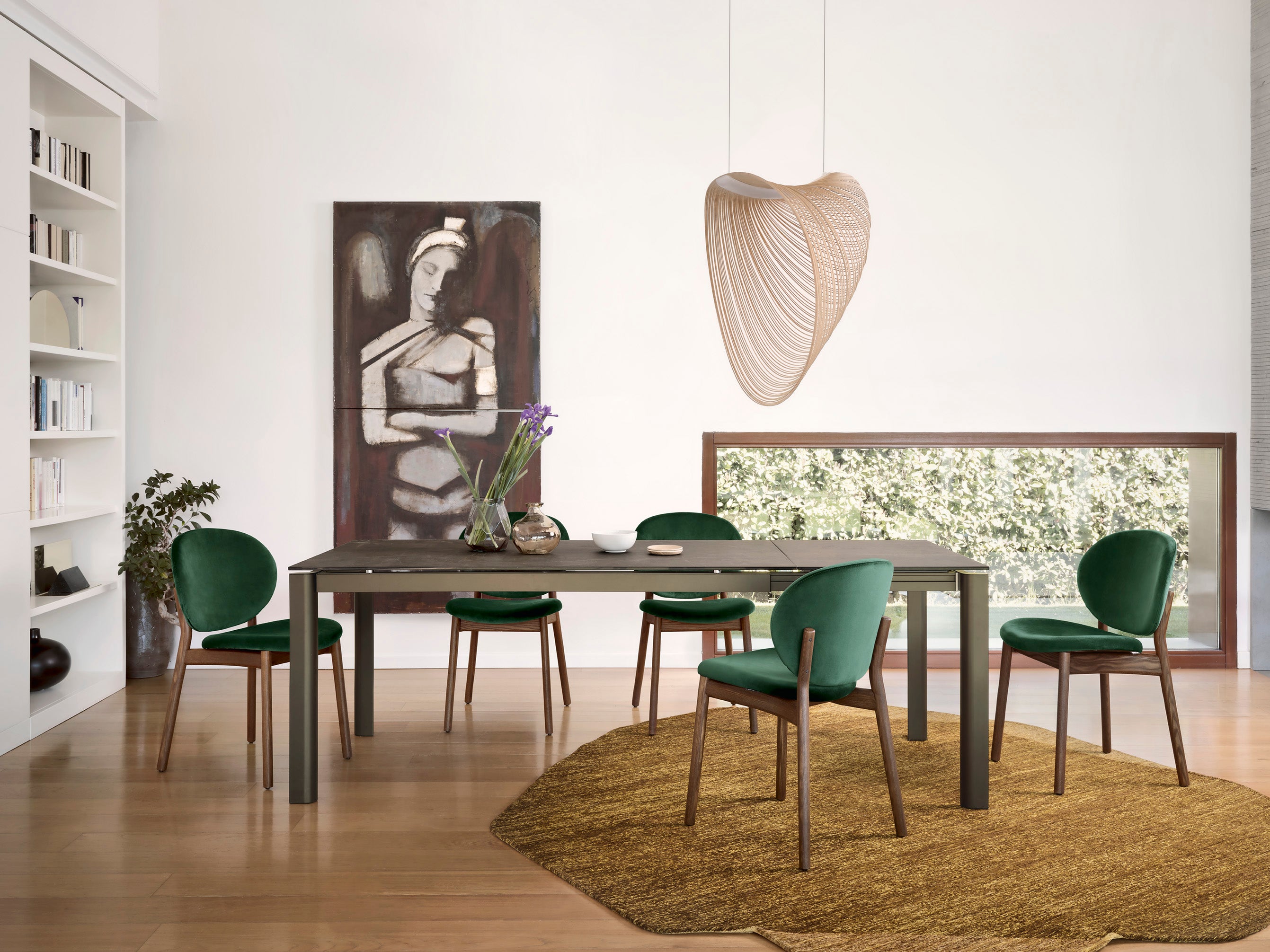 Štíhlé, prodloužené nohy podpírají funkční desku s možností rozkládání. Stůl Stream spojuje jednoduchost formy s okamžitě rozpoznatelným designem, díky čemuž se skvěle hodí do moderní jídelny, nabízející harmonické spojení estetiky, pohodlí a každodenní funkčnosti.