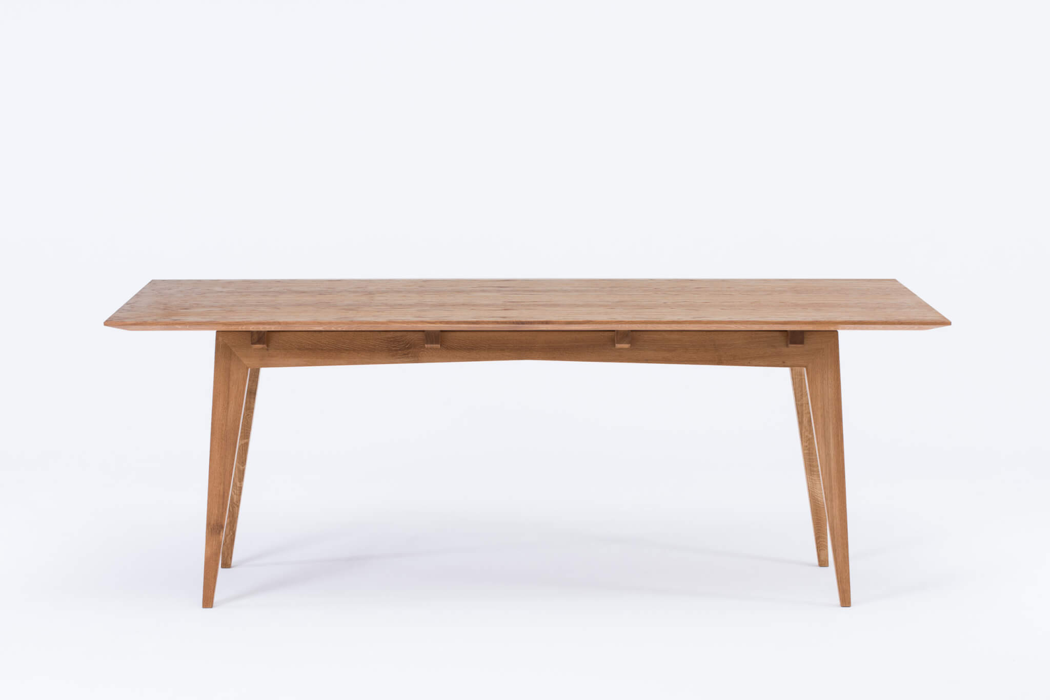 Stół Tamaza to połączenie lekkości formy i solidnej konstrukcji. Smukłe, wzdłużne nogi nadają mu delikatnego charakteru, podczas gdy głębokie podcięcie krawędzi blatu sprawia, że mimo swojej masywnej grubości blat wydaje się unosić nad podstawą. To nowoczesny stół, który łączy elegancję z niezawodnością, stając się funkcjonalnym i dekoracyjnym elementem każdej przestrzeni.