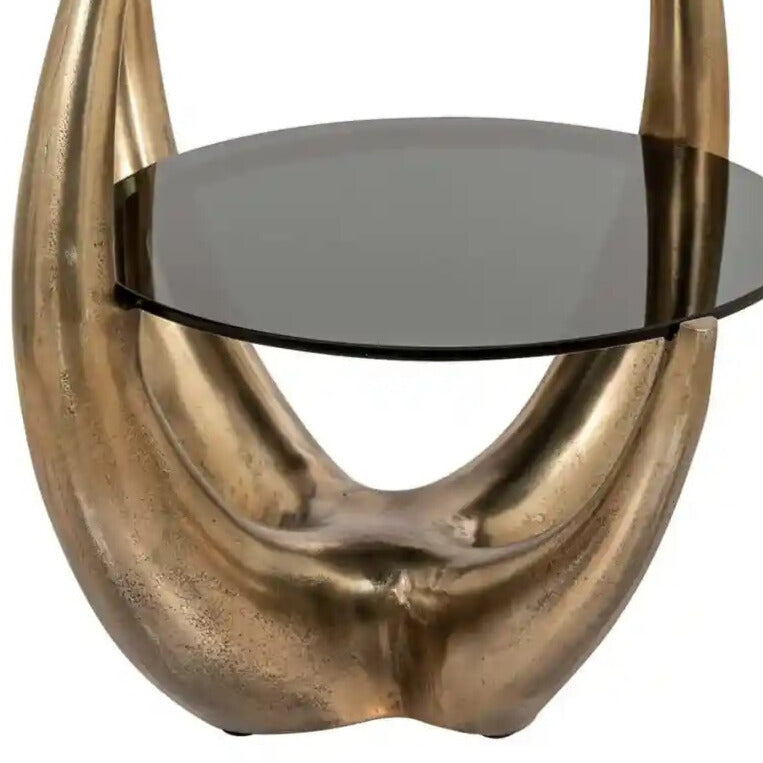 Exkluzivní stolek Aida dvouúrovňový je spojení elegance a funkčnosti v moderním provedení. Zlatá základna s sochařskou formou přitahuje pozornost, zatímco dvě skleněné desky dodávají celku lehkost a rafinovaný charakter. Je to výjimečný kus nábytku, který se stane ozdobou každého interiéru, spojující praktičnost s uměleckým designem.
