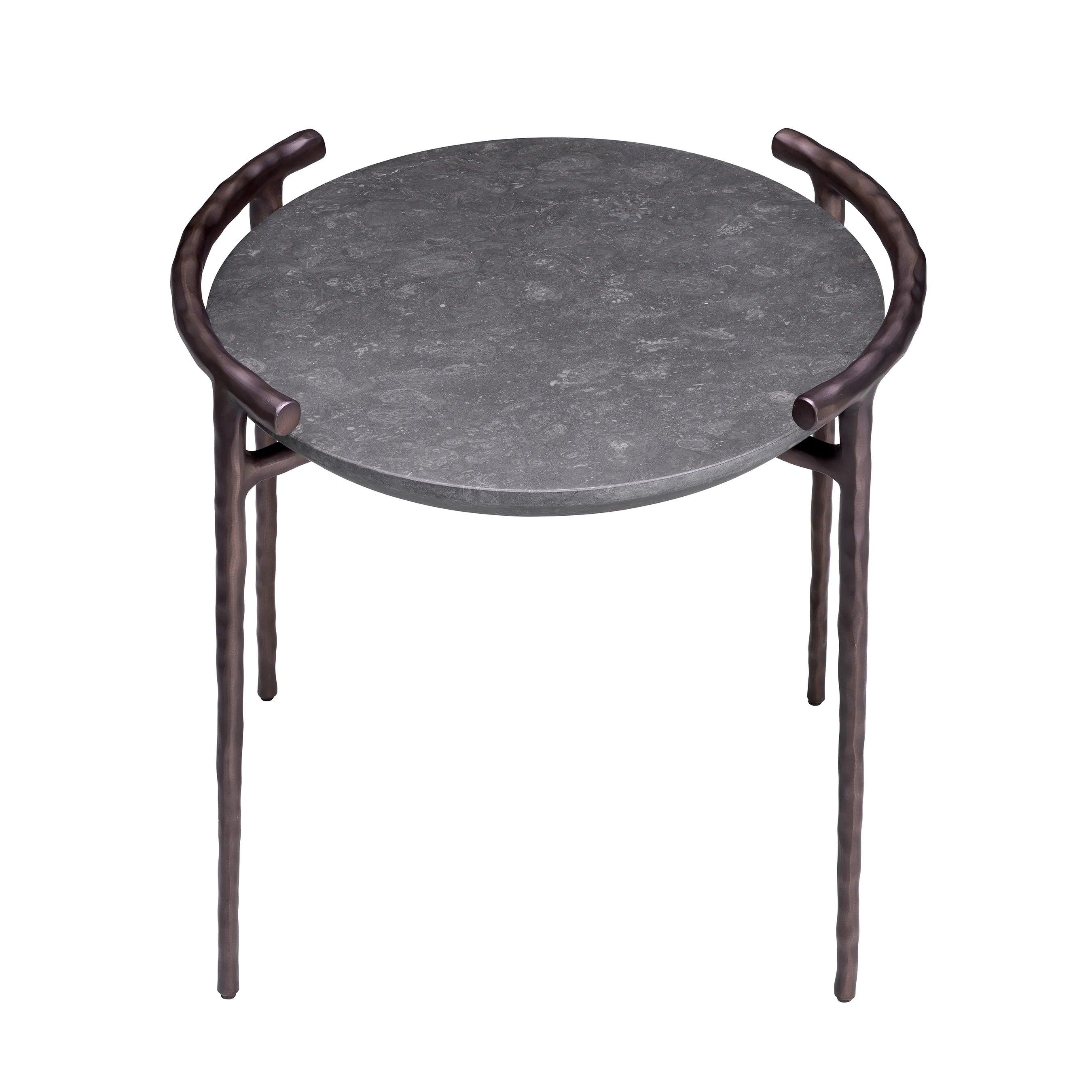 Kovové nohy v bronzové barvě nejsou jen výrazem pevnosti a trvanlivosti, ale také dodávají stolku neuvěřitelnou eleganci. Jejich povrchová úprava odkazuje na starověké řemeslné techniky, čímž nábytku dodává hloubku a historii.