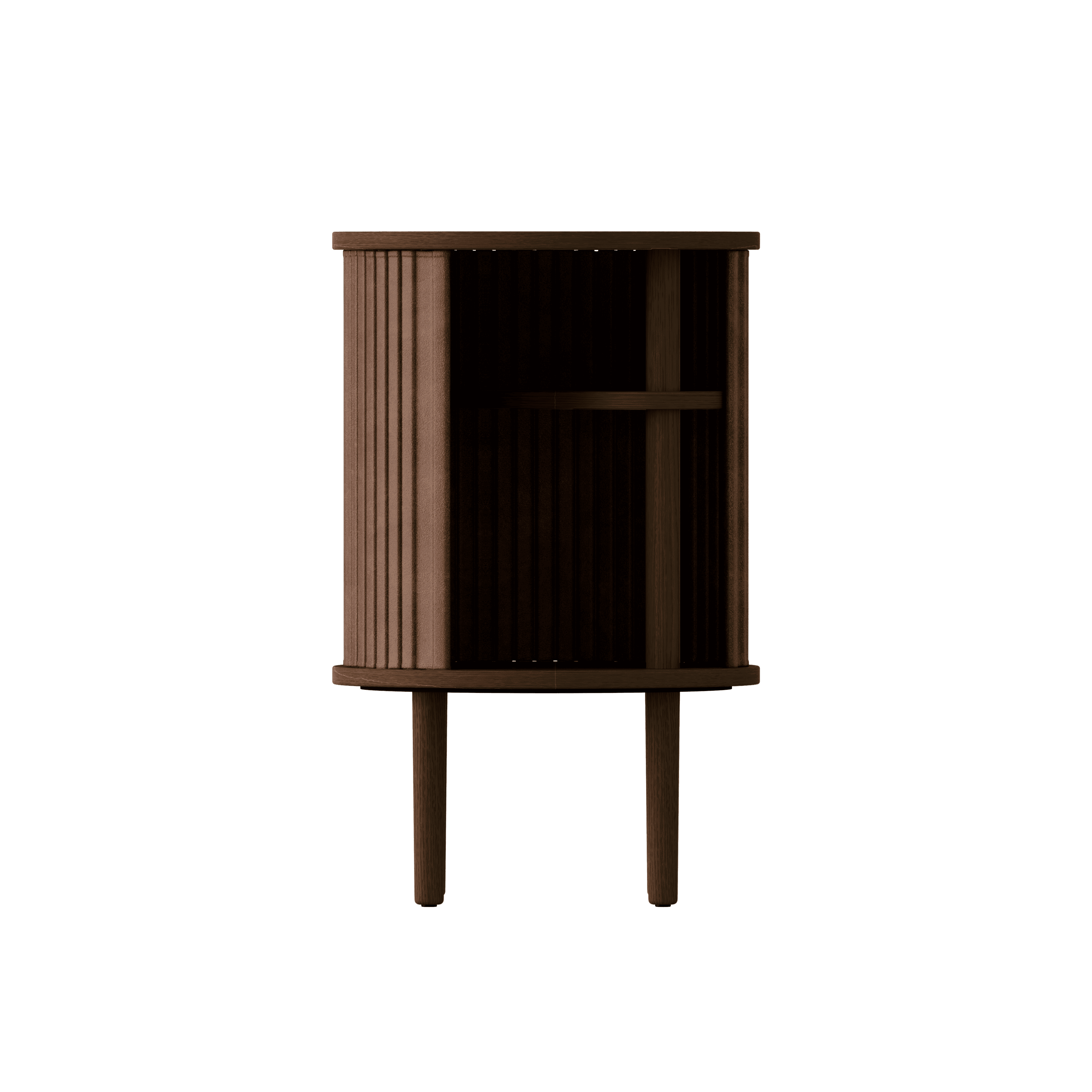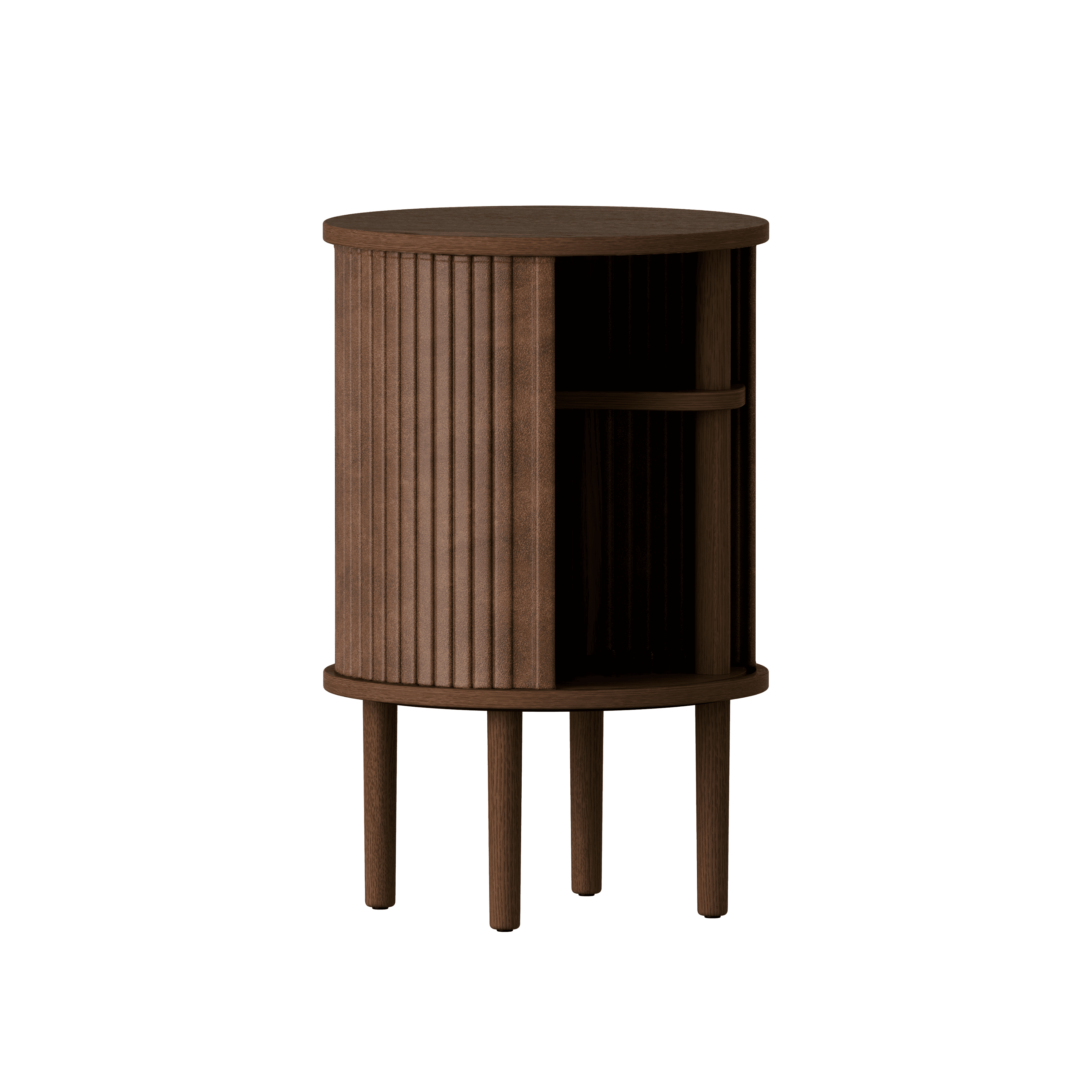 Stolek nenabízí pouze praktické místo pro uložení drobností, ale také má speciálně tvarovanou vnitřní polici s výřezem pro vyšší předměty, jako jsou knihy nebo časopisy.