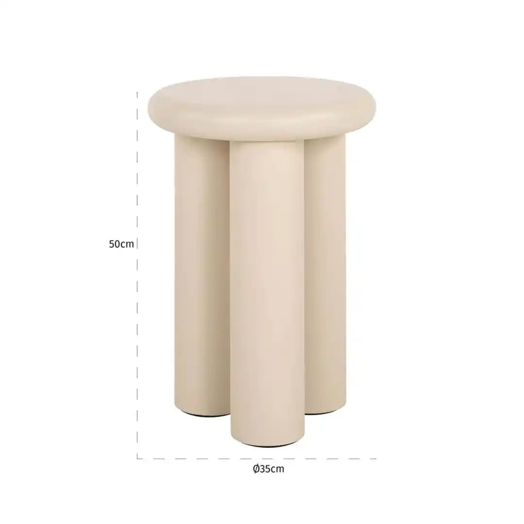 Elegantní stolek Elbaz v béžové barvě se vyznačuje minimalistickým designem a zajímavou formou, která skvěle zapadá do moderních interiérů. Jeho geometrická konstrukce složená ze tří masivních nohou a jednoduchá kulatá deska vytvářejí soudržný a působivý celek. Je to praktický a estetický doplněk, který dodá místnosti jemnou eleganci.