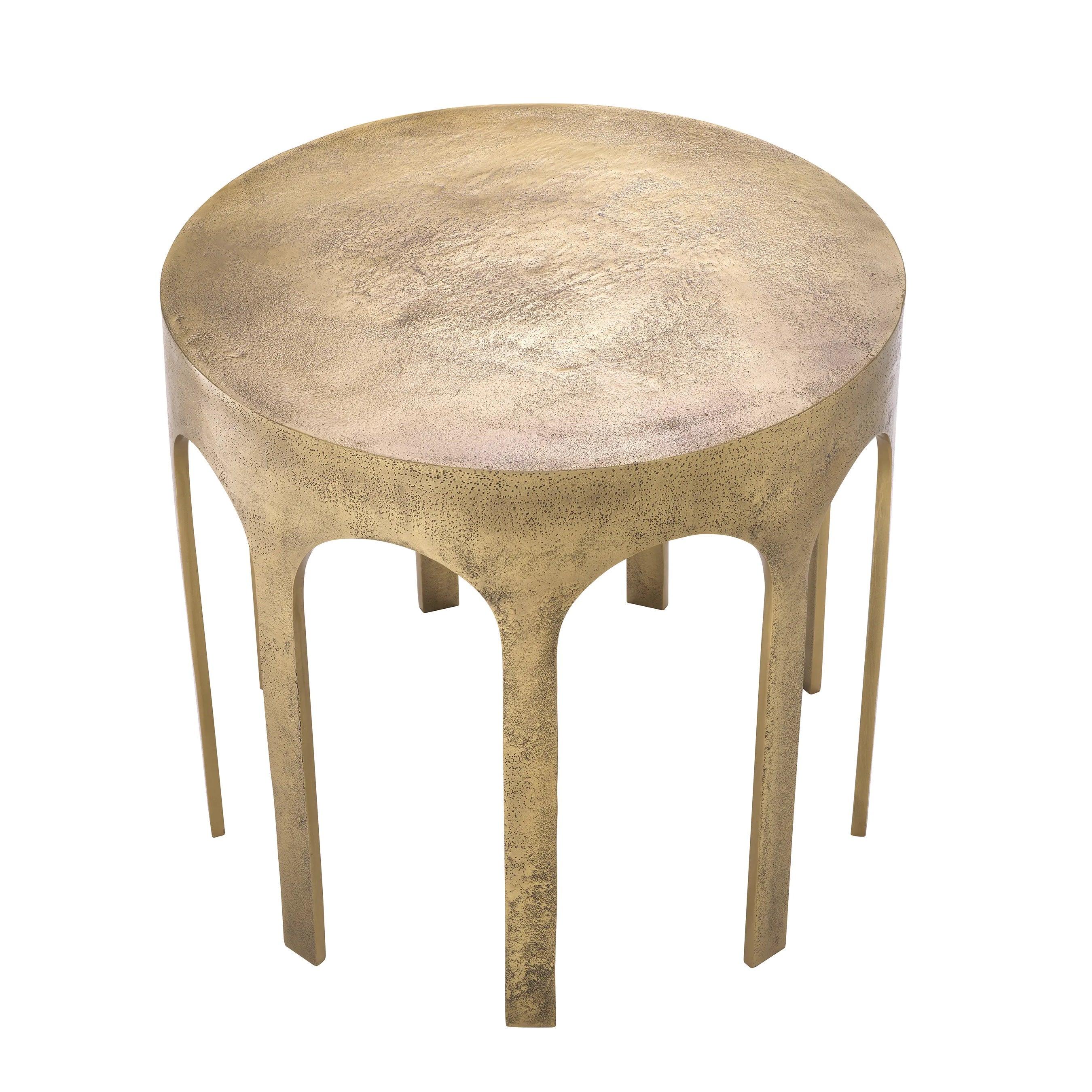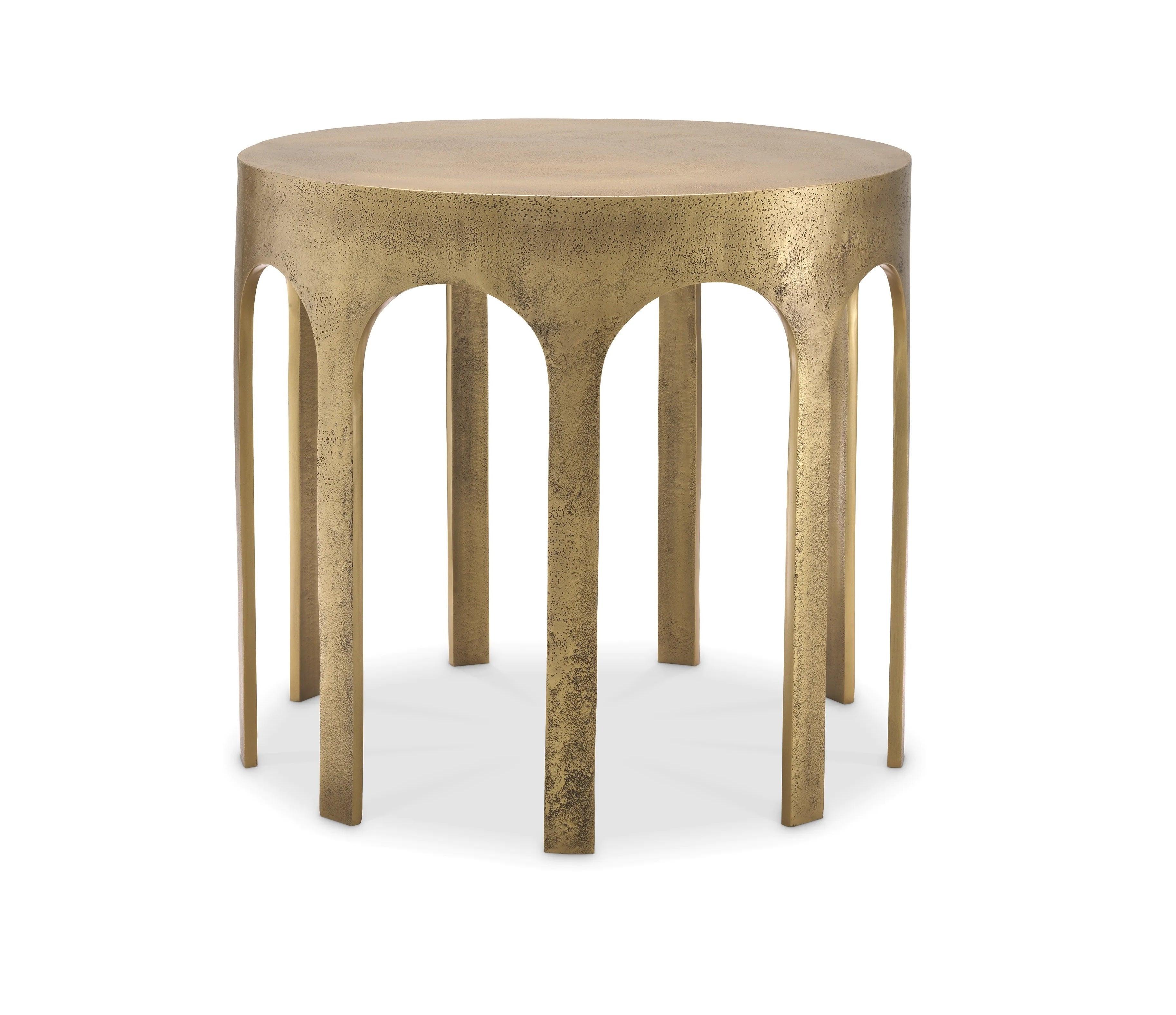 Boční stolek Gardini je esencí klasiky v kompaktní podobě, ideální pro ty, kteří chtějí čerpat z tradice a zároveň optimalizovat prostor. Mosazné vintage provedení evokuje luxusní interiéry starých paláců, zatímco jeho jedinečný, texturovaný povrch dodává moderní nádech, vytvářející most mezi minulostí a přítomností.