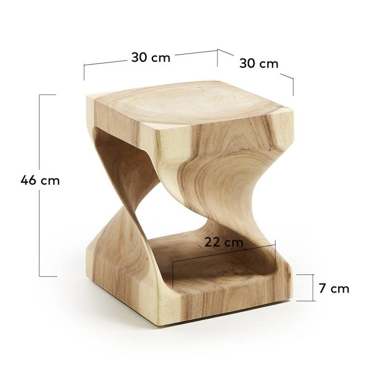 Boční stolek s vyřezávaným vnitřkem HAKON z masivního dřeva mungur