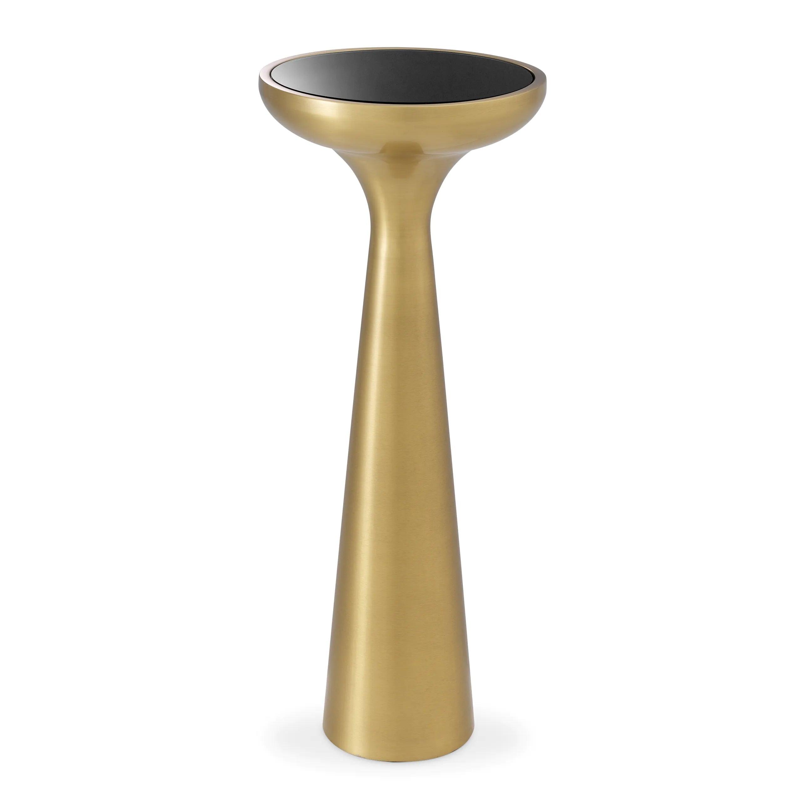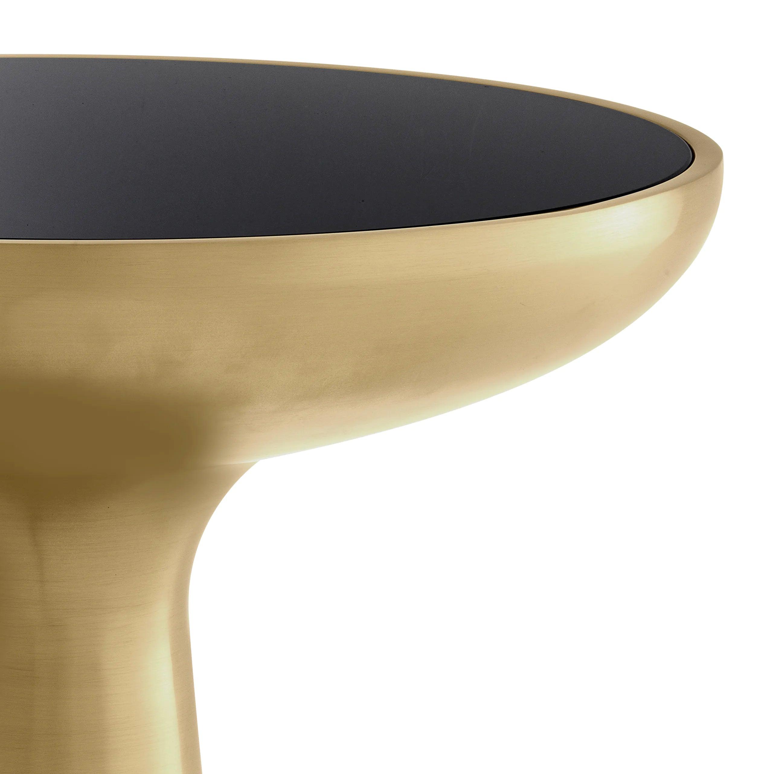 Boční stolek Lindos je esencí skandinávské elegance, která spojuje funkčnost a nadčasový design. Jeho organický tvar a ohromující kombinace kartáčovaného mosazi s černým skleněným vrchem z něj činí nejen praktický prvek vybavení, ale také výjimečný dekorativní akcent v každém interiéru.