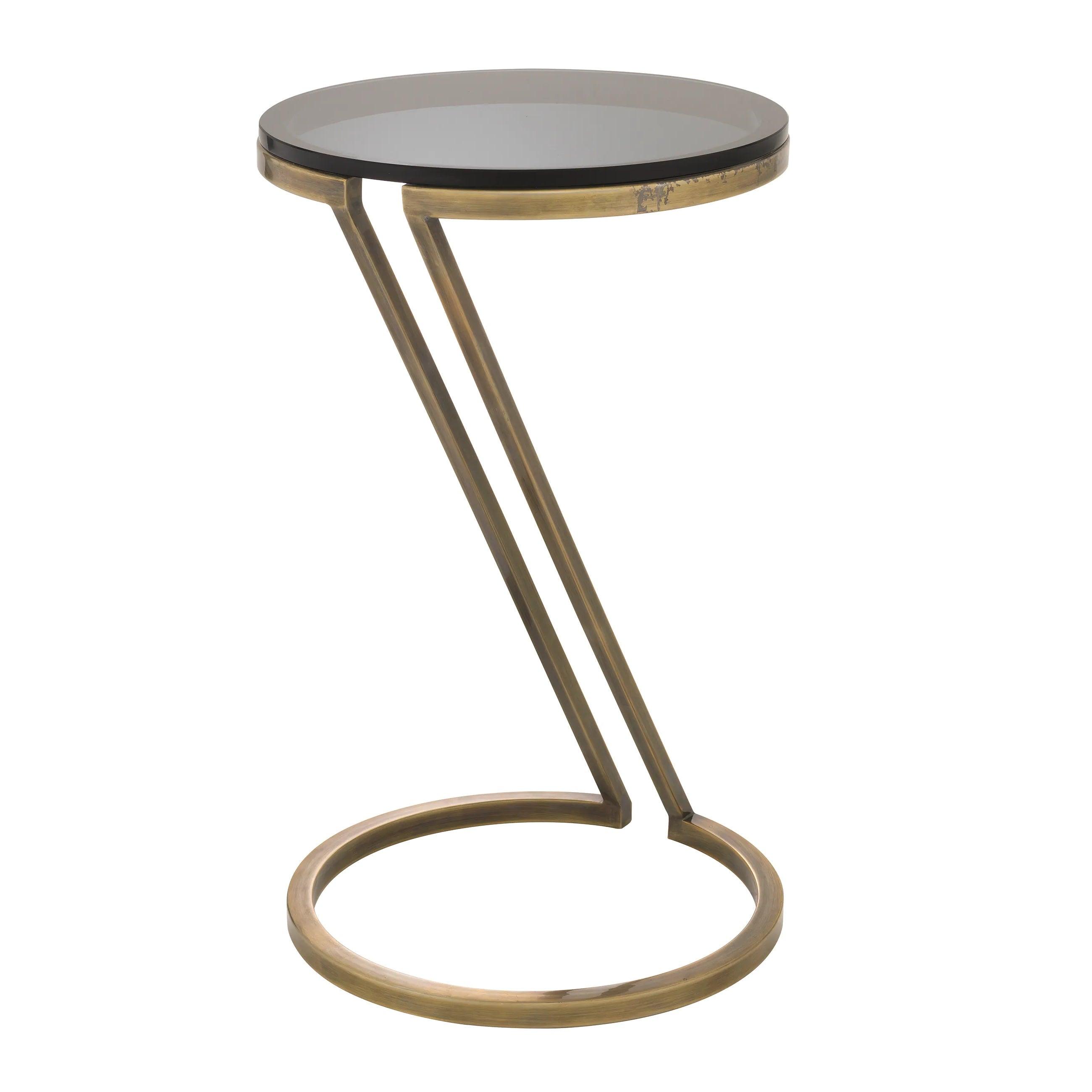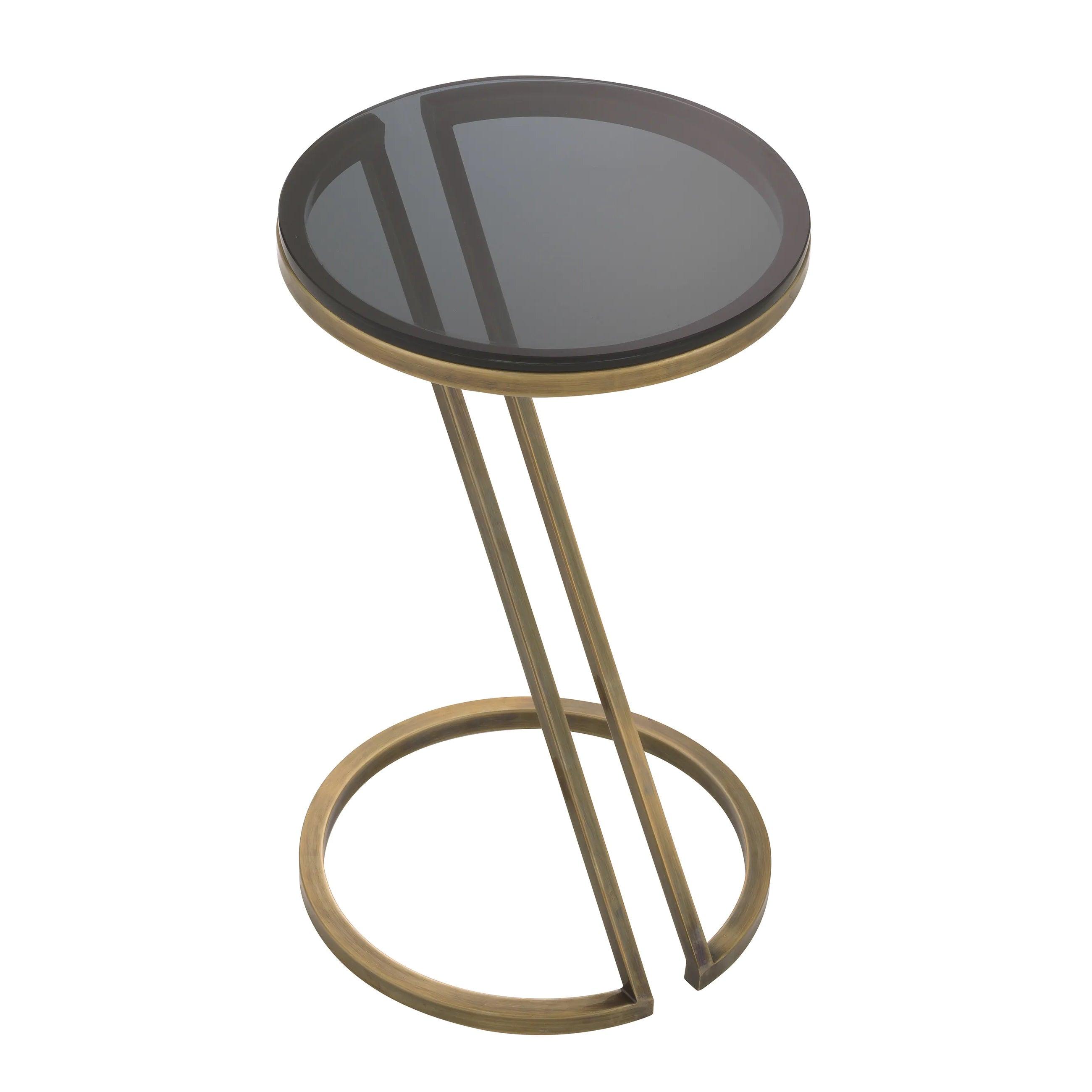 Boční stolek Falcone je mistrovské dílo řemesla a designu, které jistě obohatí každé interiér. Jeho jemná konstrukce s vintage povrchovou úpravou přitahuje pozornost a vyvolává vzpomínky na doby minulého elegance. Deska z kouřového skla, jemně vyvýšená nad šikmým podstavcem, vytváří dojem, že se vznáší ve vzduchu, přitahující pozornost svou lehkostí a elegancí.