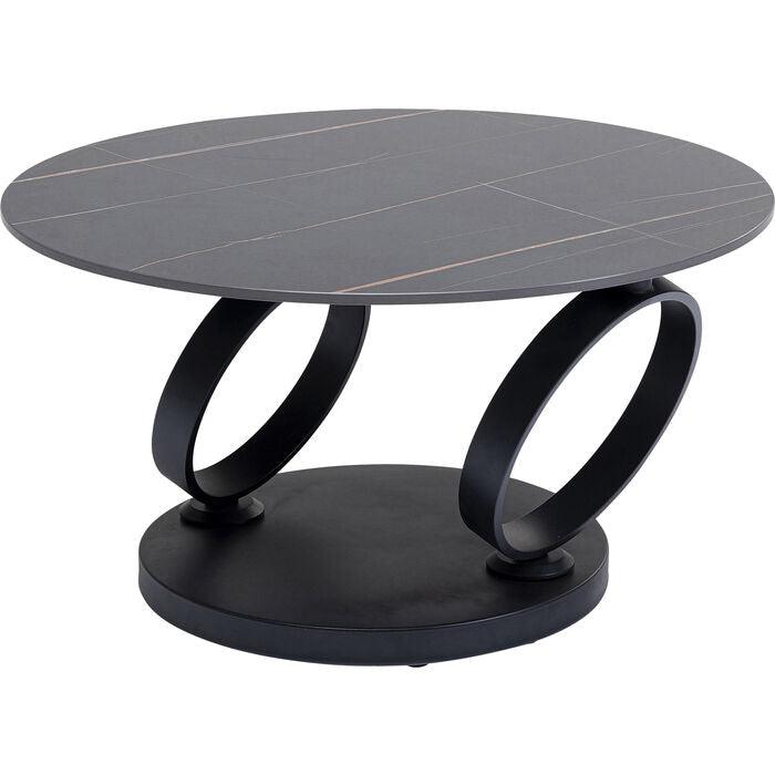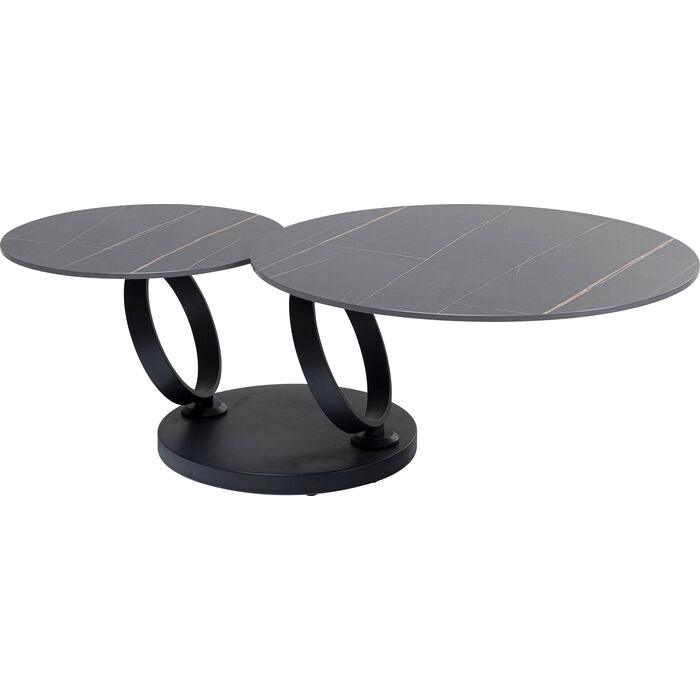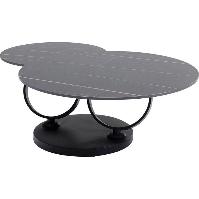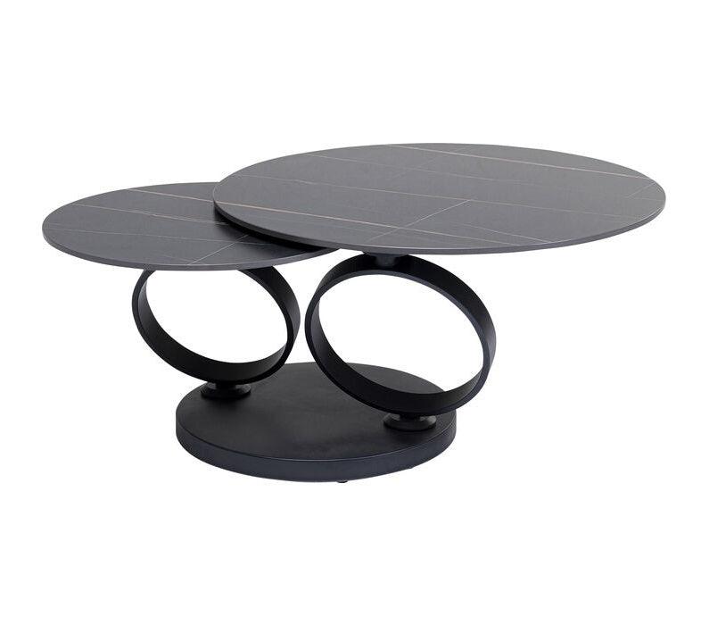Kávový stolek Beverly okouzluje svým vzhledem a vnáší do domova luxusní atmosféru. Kulatá základna a dvě rámy ve tvaru prstenů z oceli jsou pokryty matnou černou práškovou barvou. Co víc, Beverly je nesmírně praktický. Ať už se nachází vedle rohové pohovky, nebo sedací soupravy, tento kávový stolek se snadno přizpůsobí Vašim potřebám. Stačí otočit velkou deskou, abyste měli vždy po ruce nápoje, občerstvení a ovladač od televize.