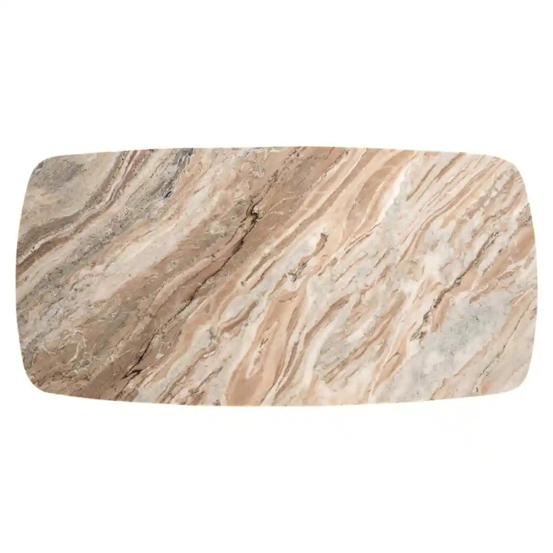 Kávový stolek Bottega je rafinovanou kombinací vznešených materiálů a sochařské formy. Deska z mramoru Toronto s jemným vzorem a delikátní, hnědošedou tonací kontrastuje s dynamickou základnou ve tvaru písmene „X“, vyrobenou z mosazi a železa. Celkově vyzařuje eleganci a moderní třídu, což činí stolek dokonalým akcentem v obývacím pokoji, ložnici nebo chodbě.