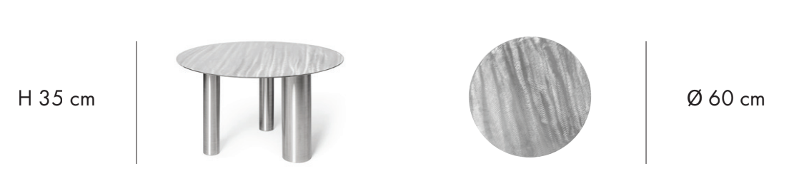 Kávový stolek Brandt CS1 je elegantní nábytek inspirovaný hnutím Bauhausu, který spojuje moderní eleganci s funkčností. Stolek Brandt CS1 je vyroben výhradně z nerezové oceli, charakterizuje se hladkým vrchem a třemi válcovými nohami různých průměrů, které vytvářejí vyváženou asymetrii. Ručně kartáčovaný povrch vrchu připomíná vlny na vodě, což činí každý kus unikátním dílem užitkového umění.