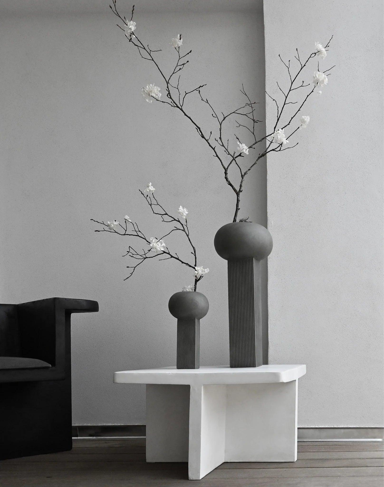Kávový stolek Brutus je výrazný kus nábytku inspirovaný brutalistní architekturou, vyrobený z lehkého vláknitého betonu, který dodává formě surový, sochařský charakter. Kombinace ostrých linií s jemnými křivkami a ručně malovaný, texturovaný povrch činí každý kus jedinečným prvkem moderního interiéru.