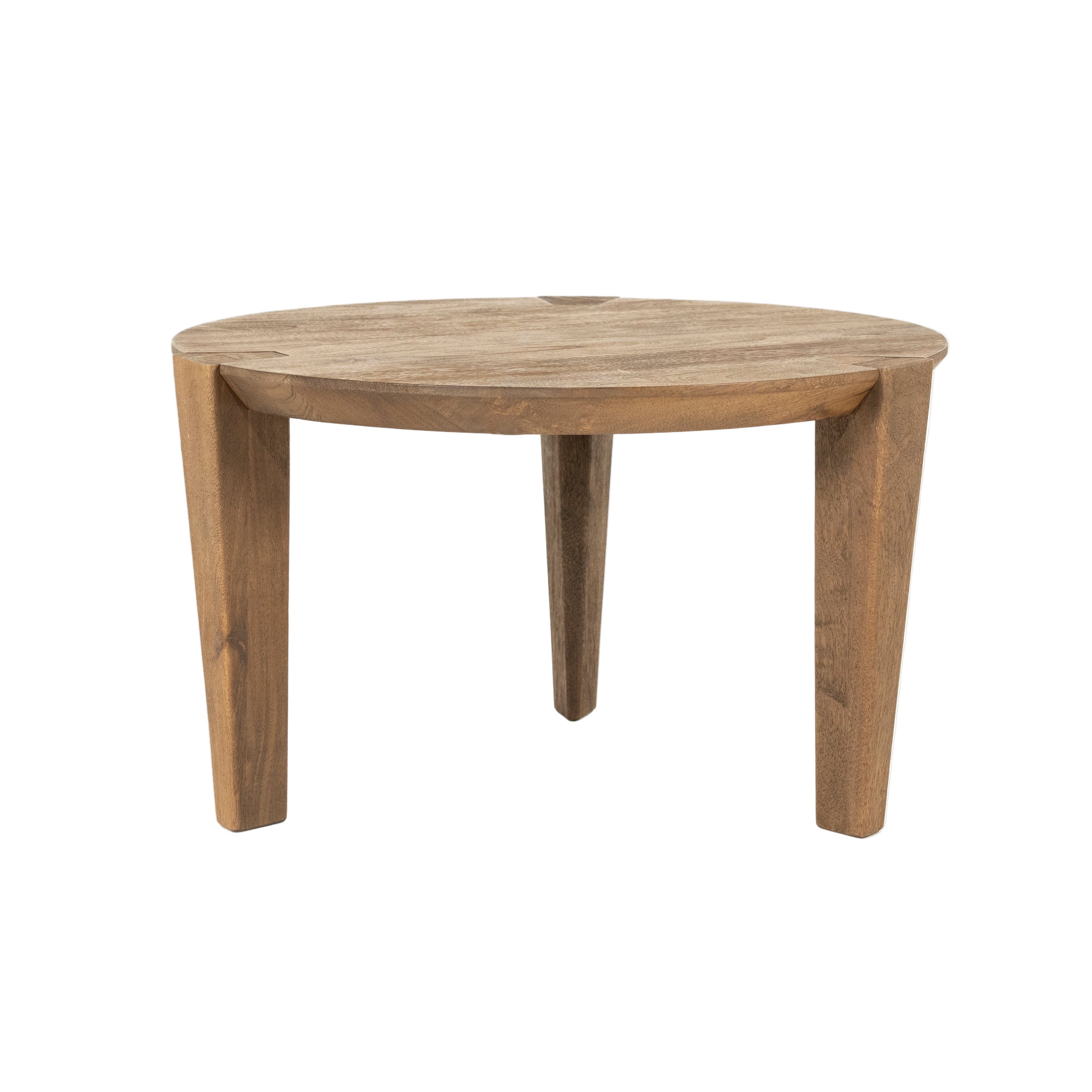Stolik kawowy Davina to harmonijne połączenie prostoty, naturalności i elegancji. Wykonany z ciepłego, brązowego drewna mango o subtelnym usłojeniu, wprowadza do wnętrza przytulność i wyrazisty charakter. Okrągła forma oraz delikatnie zwężane nogi nadają mu lekki efekt retro, dzięki czemu ten okrągły stolik kawowy doskonale uzupełnia aranżacje w stylu japońskim, rustykalnym czy vintage.