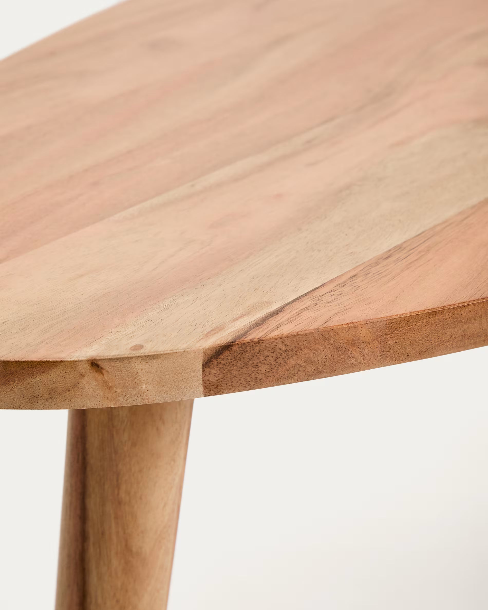 Výjimečný konferenční stolek Duvani z masivního akáciového dřeva s bílým povrchem je elegantní a nadčasový kus nábytku, který se skvěle hodí do interiérů inspirovaných skandinávským stylem a moderním minimalismem. Jeho jemná forma a vyvážené proporce dodávají prostoru harmonii a lehkost, a zároveň přinášejí přirozené teplo a útulnost.