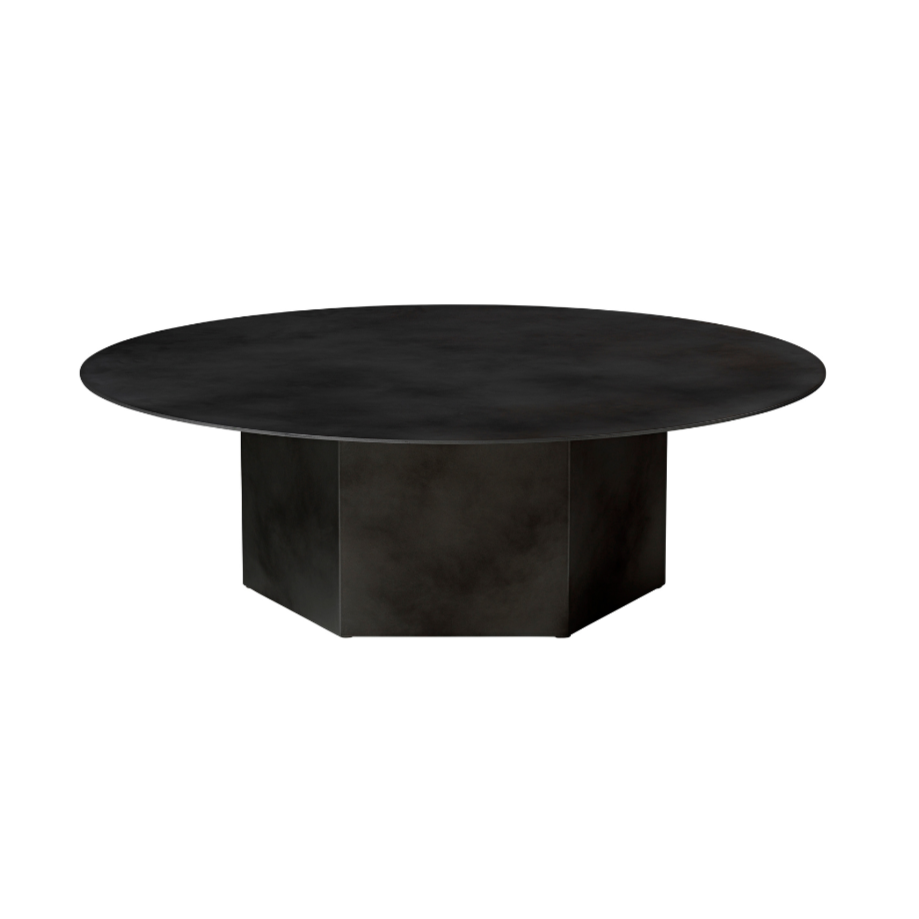 Monolitický tvar desky a robustní základna dodávají stolku výraznou vizuální přítomnost. Každý kus prochází ručními procesy dokončení – ocel je pozinkována, lakována a patinována, což způsobuje, že povrch získává jedinečnou texturu a hloubku barvy. Díky tomu je každý stolek Epic jedinečný. Dostupný ve třech velikostech, může být používán jako samostatný akcent nebo kombinován ve skupinách, čímž vytváří dynamické kompozice různorodé co do barvy, výšky a materiálu.