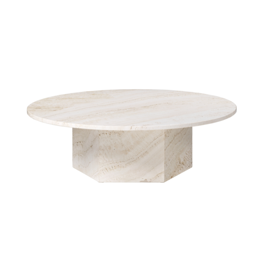 Kávový stolek Epic je monumentální projekt autorství GamFratesi, inspirovaný klasickou architekturou starověkého Řecka a Říma. Vyrobený z autentického travertinu, spojuje sochařskou formu s přirozenou krásou kamene. Každý kus je jedinečný — vzor, žíly a drobné výplně pryskyřicí odrážejí neopakovatelný charakter přírodního materiálu.