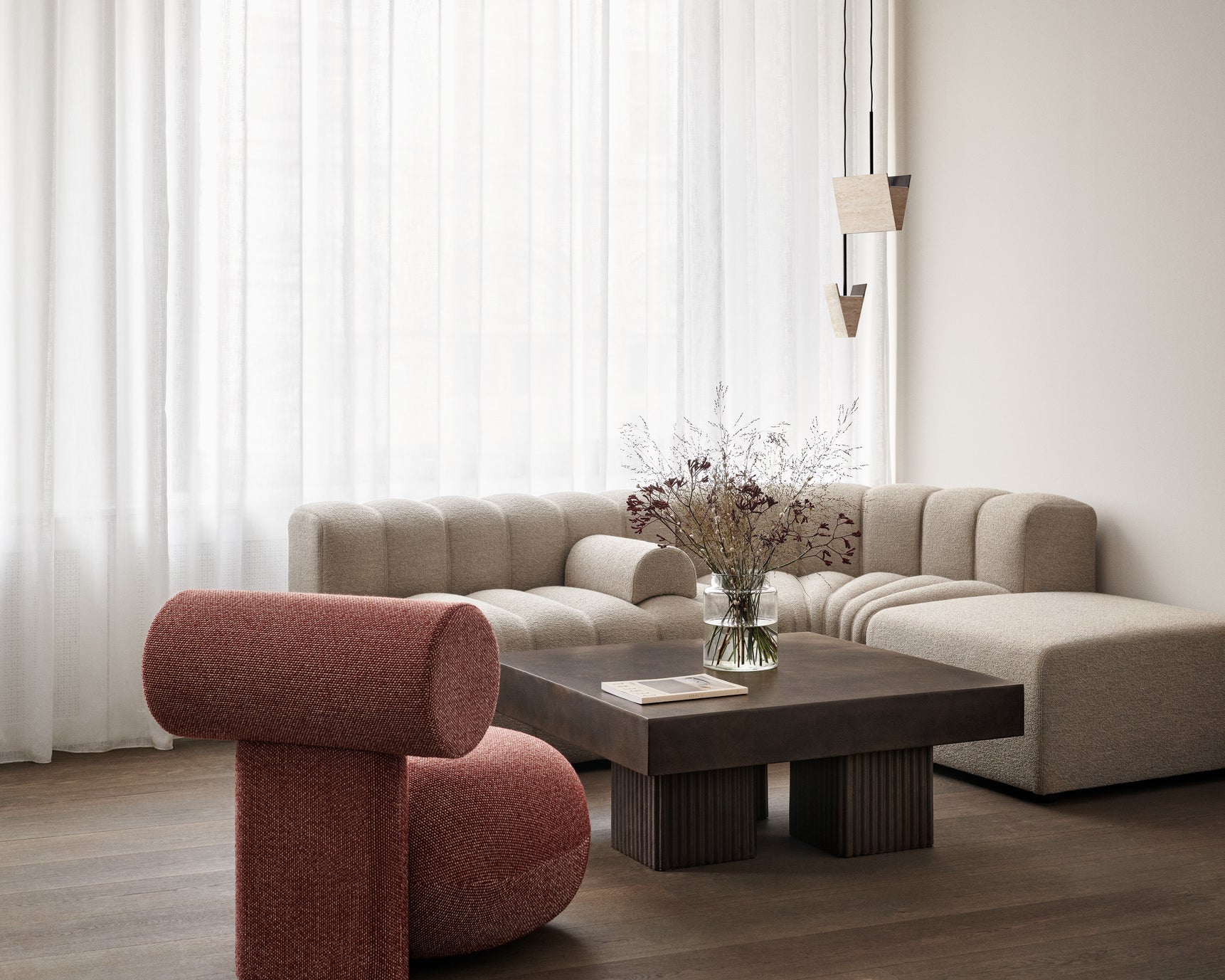 Stolik kawowy Gear to wyjątkowy mebel, który swoim wyglądem przypomina rzeźbę inspirowaną architekturą brutalistyczną lat 50. Masywne nogi i gruby blat tworzą solidną, geometryczną formę, a charakterystyczne żłobienia wprowadzają efekt gry światła i cienia, dzięki czemu stolik zmienia swój charakter w zależności od oświetlenia. To nie tylko funkcjonalny element wyposażenia, ale również wyrazista dekoracja, która nada wnętrzu oryginalności i charakteru.