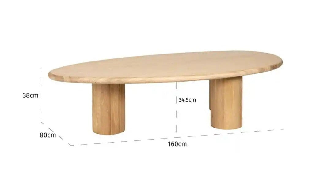 Elegantní konferenční stolek Oakley s oblinami spojuje minimalistickou formu s rafinovaným přírodním povrchem. Zaoblená deska vyrobená z dubové dýhy a dubového dřeva vypadá neobyčejně lehce, a přitom pevně. Silná základna ve tvaru válce mu dodává stabilitu a představuje výrazný, moderní prvek, který skvěle ladí s organickými liniemi desky.
