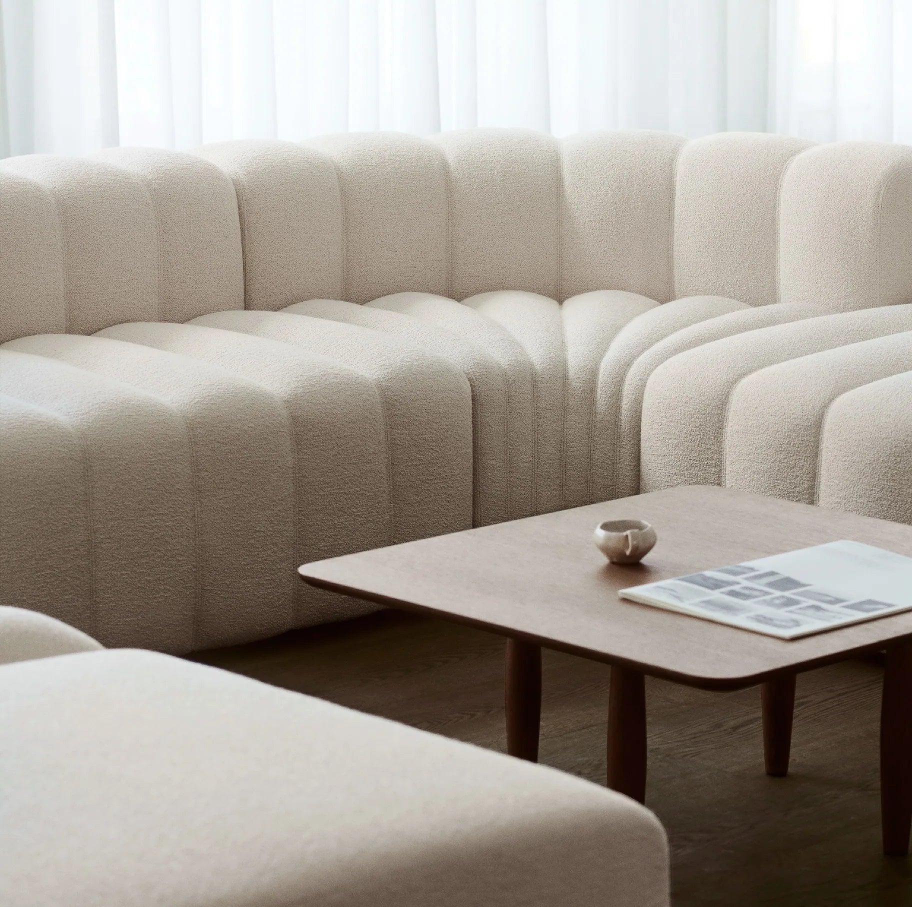 Deska stolu Oku je vyrobena z dubového dýhování s zaoblenými okraji, což dodává sofistikovaný detail velké ploše. Nohy ze dřeva dubu jsou rozmístěny sporadicky, aby vytvořily iluzi plovoucí desky, zatímco zároveň přidávají sochařské detaily k stolu.