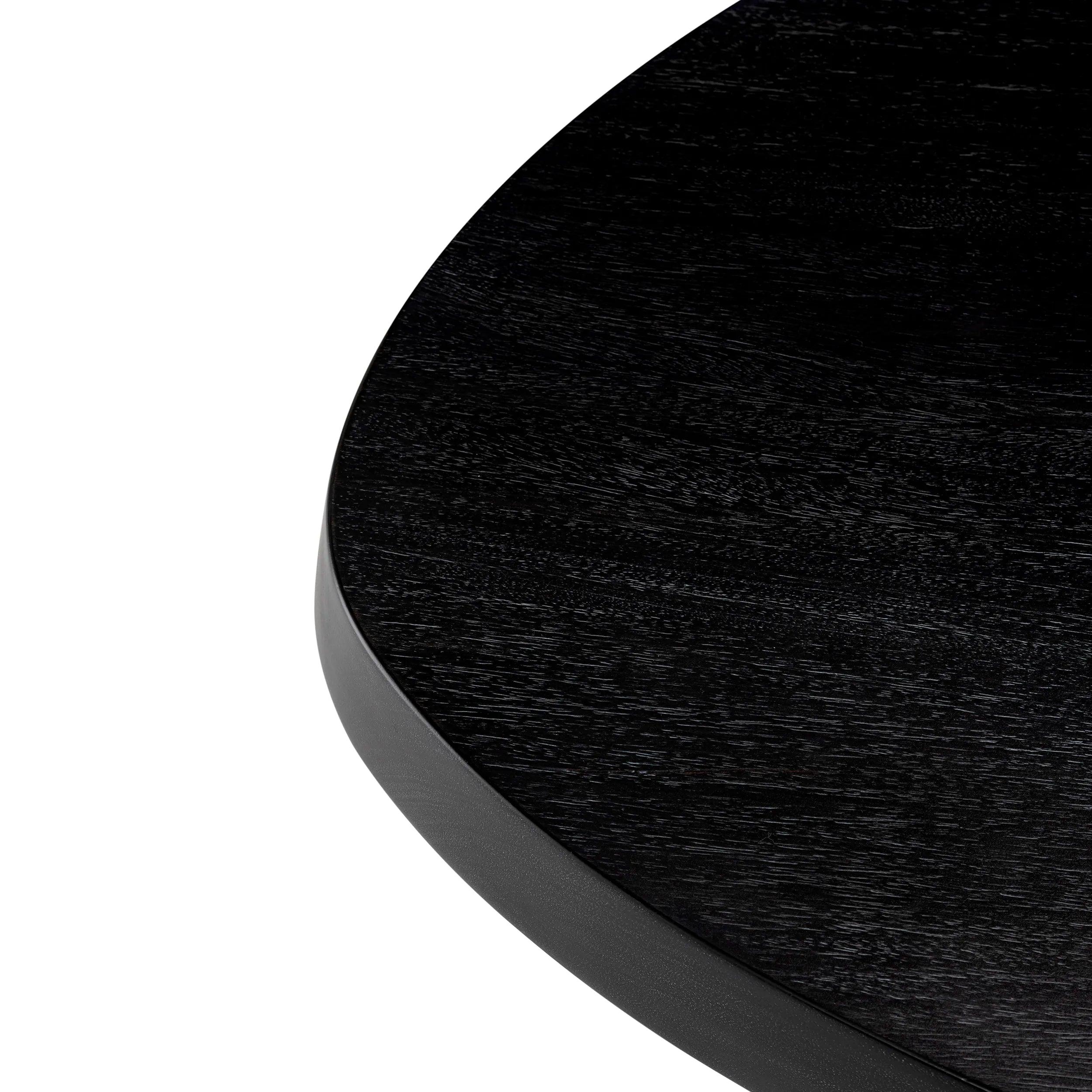 Co okamžitě upoutá pozornost, je jedinečný design černého stolku. Jeho volný tvar je zároveň jednoduchý a fascinující, představující osvěžující odklon od konvenčních forem. Výrazné čtyři nohy stolku nejsou umístěny tak, jak jsme zvyklí u většiny kávových stolků. Místo toho jejich pozice a úhel sklonu dodávají nábytku dynamiku a pocit lehkosti, navzdory pevnému materiálu, ze kterého je vyroben.