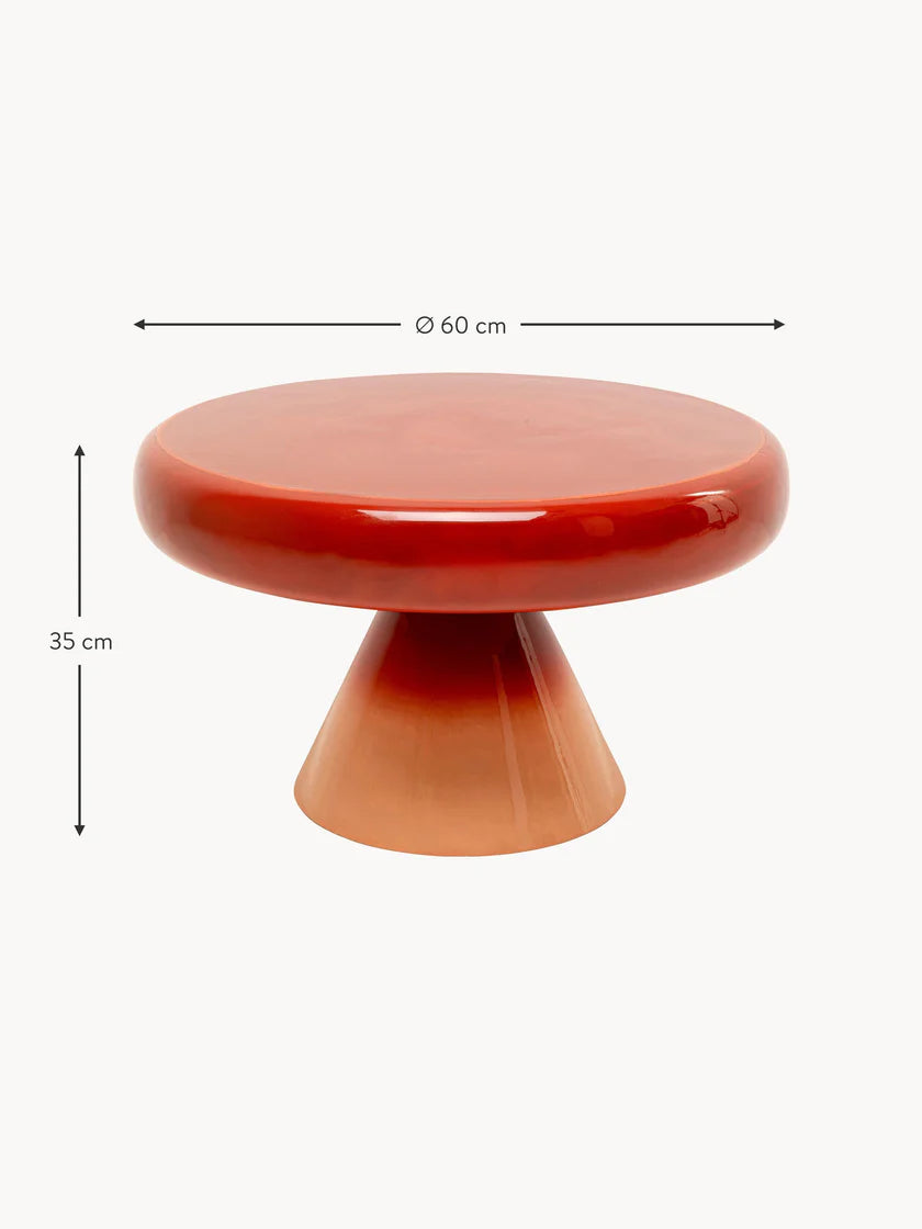 Kulový konferenční stolek RICI je ideální volbou pro ty, kteří chtějí do svého obývacího pokoje vnést trochu barvy a moderního designu. Unikátní gradient v odstínech terakoty dělá z každého kusu pozoruhodný a výjimečný dekorativní prvek. Díky pevné konstrukci z emailované oceli stolek není jen estetický, ale také mimořádně odolný a stabilní, což zaručuje pohodlí při každodenním používání.