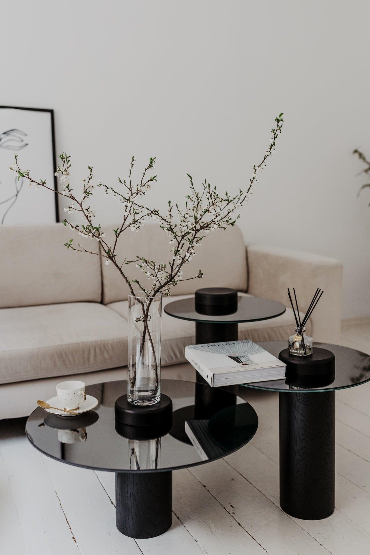 Jeho jemný tvar se hodí i do menších prostor, a v kombinaci s ostatními stolky ze sady dodá interiéru jedinečný charakter.