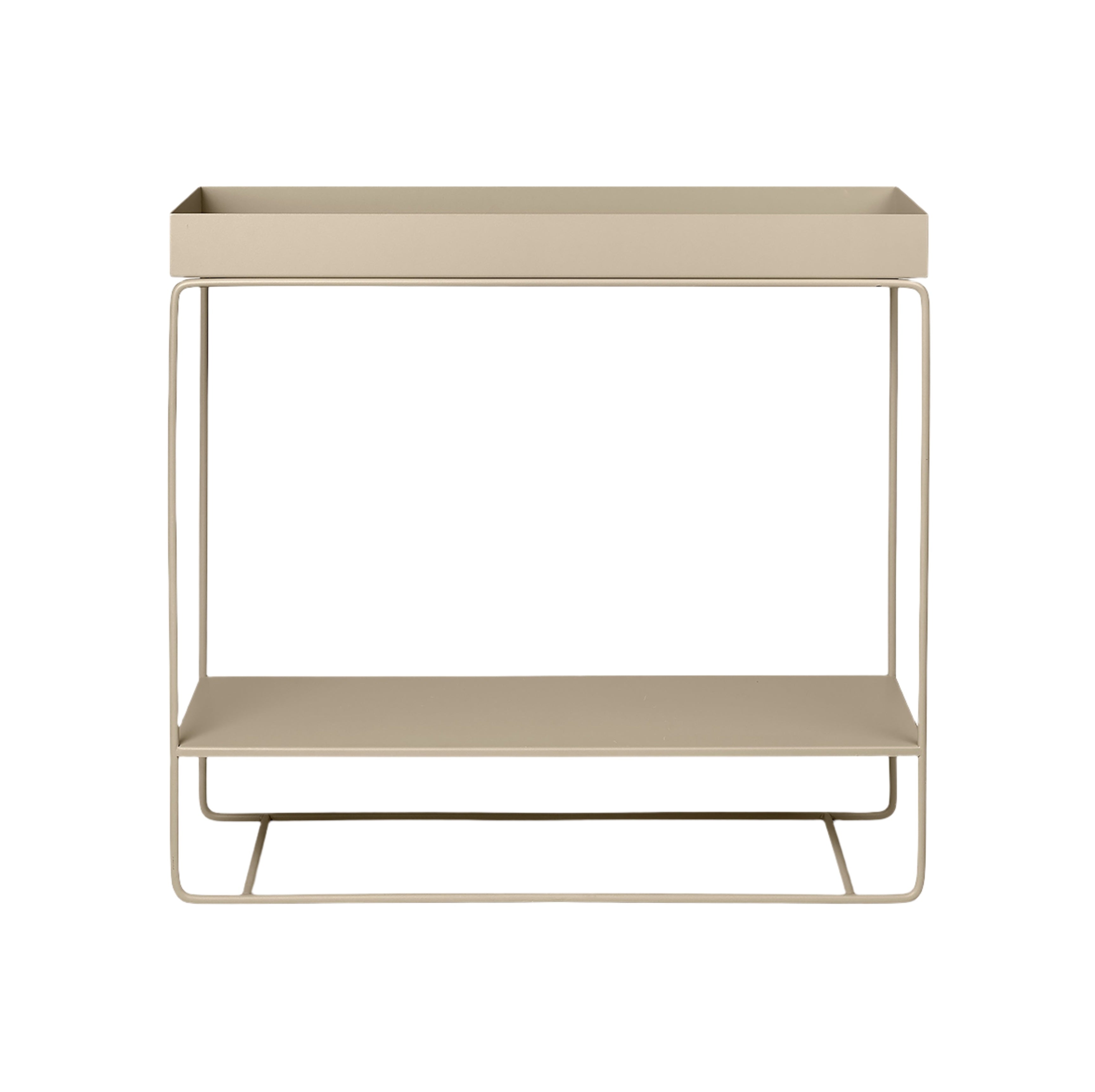 Inspirována populárním modelem Plant Box, konzole se dvěma úrovněmi v béžové barvě přináší novou kvalitu do prostoru. S zachováním těchto elegantních linií, které lze rozpoznat v celé sérii, nová konfigurace nabízí prostornou horní nádobu a dolní polici, které jsou ideální pro ukládání a vystavování dekorativních doplňků a praktických předmětů každodenní potřeby, jako jsou šálky, talíře nebo lahve. Štíhlá silueta zajišťuje, že stolik konzolový se dokonale hodí do většiny prostor, představující skvělé řešení jak pro pokojové rostliny doma, tak pro balkonový prostor na ukládání.