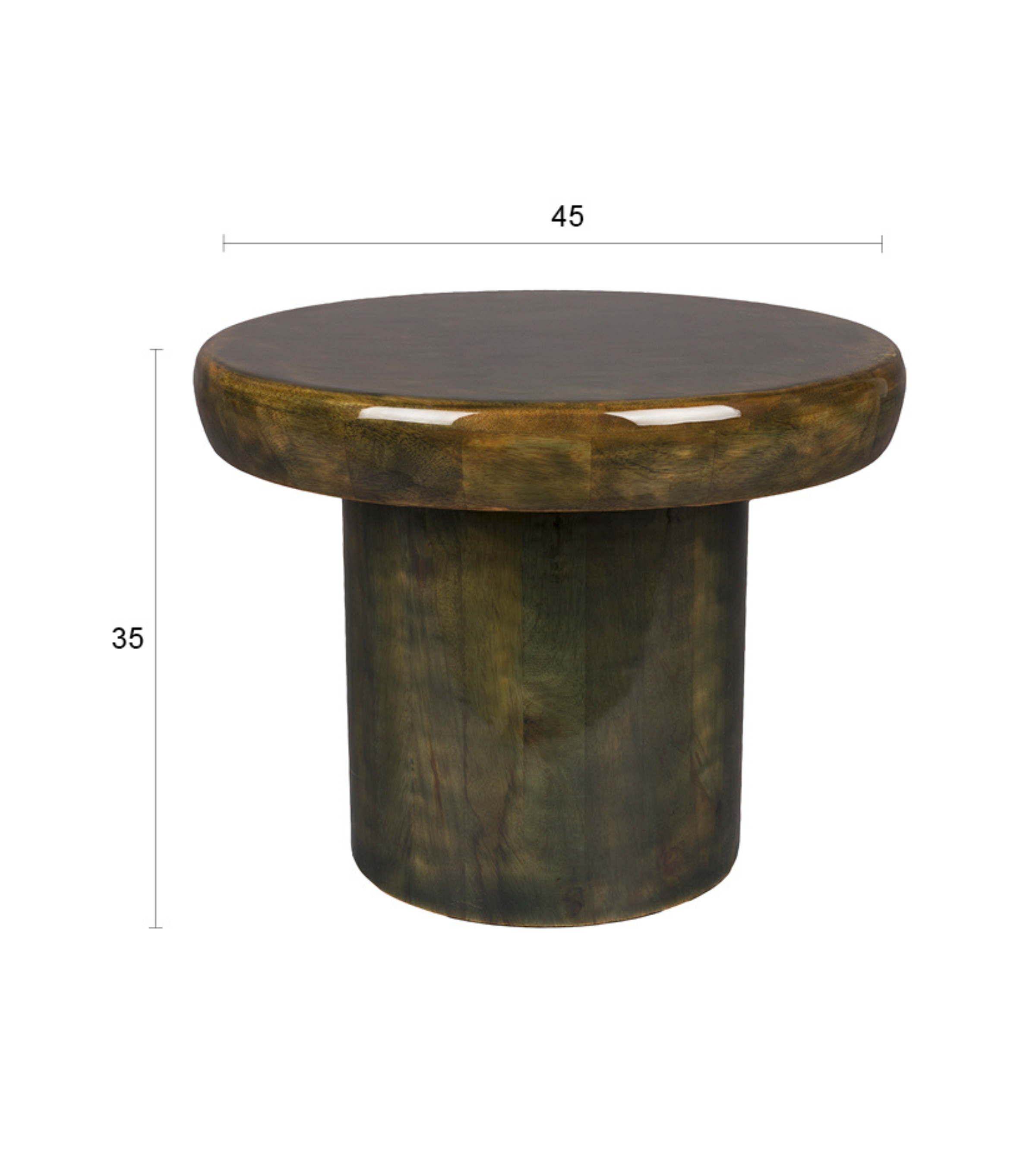 Stolik Mush to powrót do klimatu lat 70., który od pierwszego spojrzenia emanuje ciepłem i nostalgią. Inspirowany kształtem grzyba, przyciąga wzrok obłą formą i eleganckim połyskiem. Wykonany z drewna mango w głębokim, zielonym odcieniu, tworzy naturalny i przytulny akcent w każdym wnętrzu – od klasycznych aranżacji po nowoczesne przestrzenie z nutą retro.