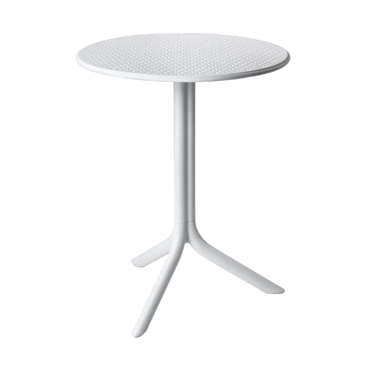 Bílý kulatý venkovní stůl s nastavitelnou výškou STEP