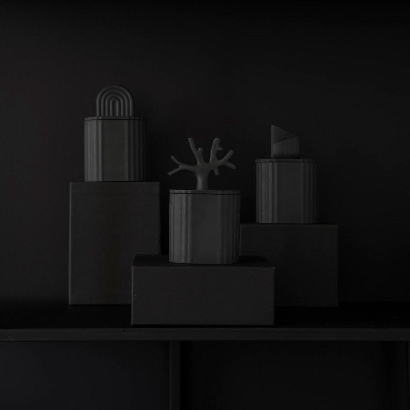 Aromatická svíčka Ki v elegantním, černém porcelánovém kontejneru čerpá svůj název z japonštiny, kde "Ki" znamená strom.