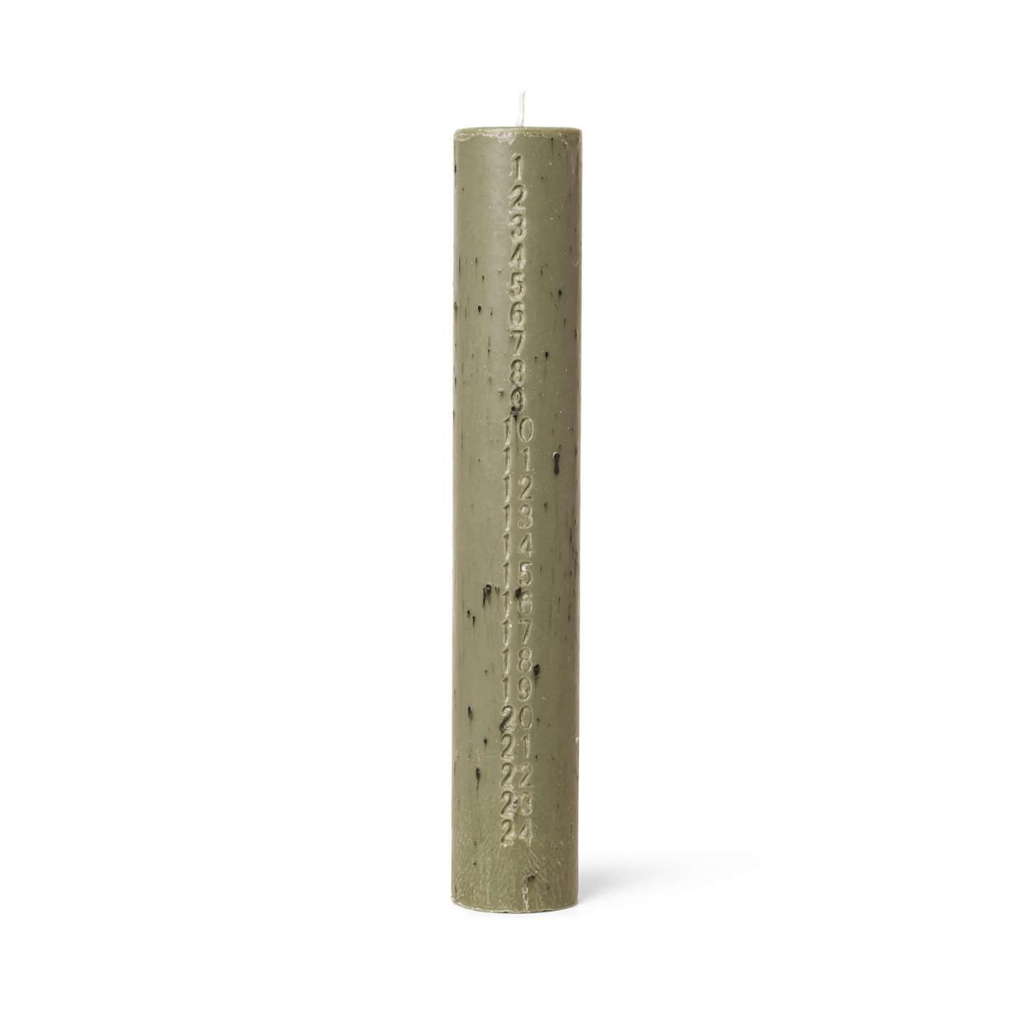 Adventní svíčka Mura je moderní interpretací klasické dánské svíčky kalenderlys, která odpočítává dny do Vánoc. Její název „Mura“, inspirovaný japonským slovem znamenajícím nepravidelnost, dokonale vystihuje jedinečný charakter této svíčky. Každý kus má jedinečnou, mírně nepravidelnou strukturu a ručně vyražená čísla, která zdůrazňují její řemeslný charakter. Teplý, zelený odstín vnáší do interiéru klid, harmonii a přirozenou vánoční atmosféru.