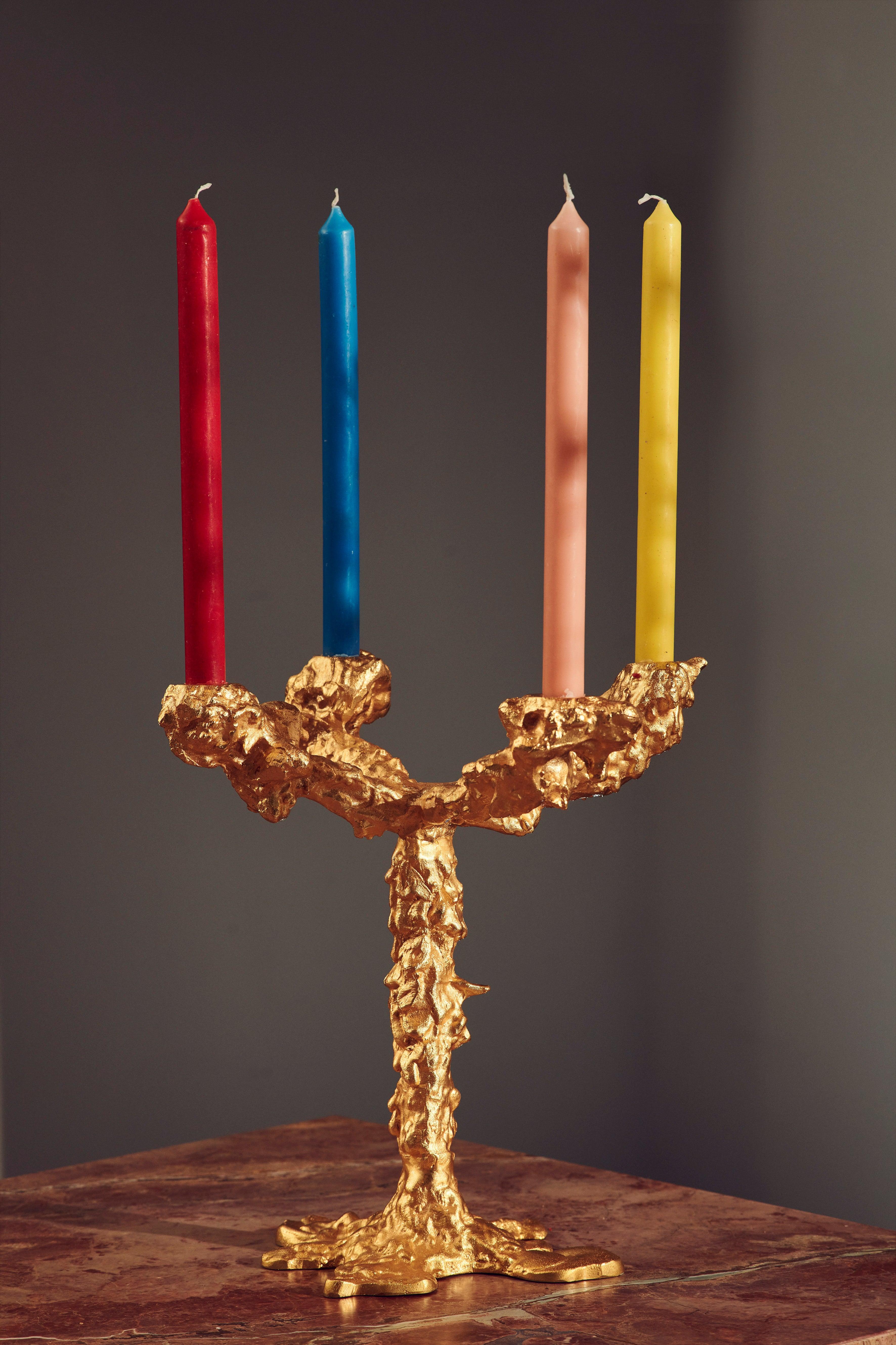 Tento svietník září jako samostatný dekorativní prvek na krbu a okouzluje, když je osvětlen na stole. Každý záhyb a křivka jeho povrchu z pozlaceného hliníku je jedinečná, což z něj činí umělecké dílo navržené tvůrcem, Pascalem Smelikem, jehož fascinuje deformace a jedinečnost. Drip dramaticky vystrkuje své paže a vstupuje na scénu jako majestátní vrchol ve vašem interiéru.
