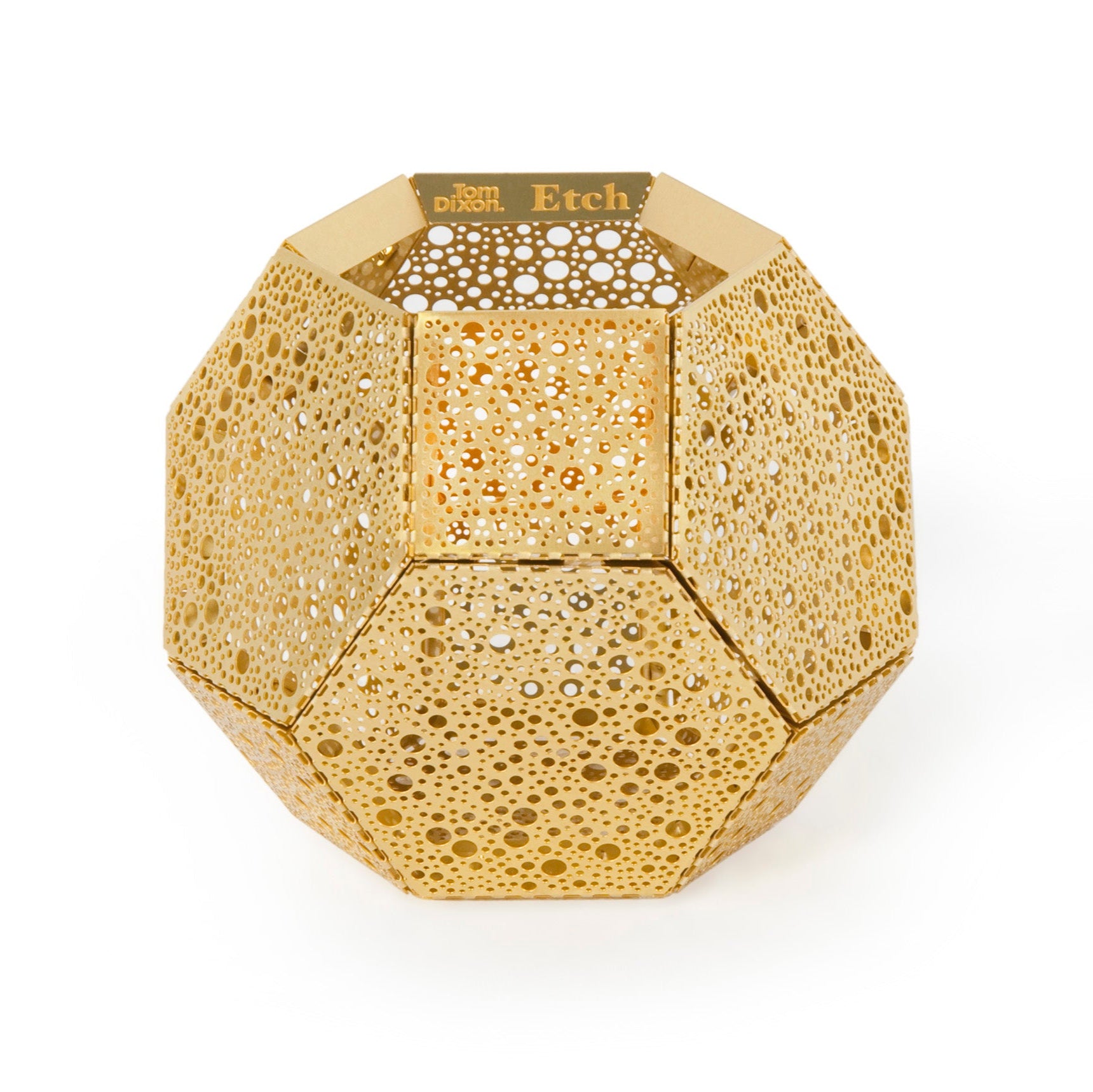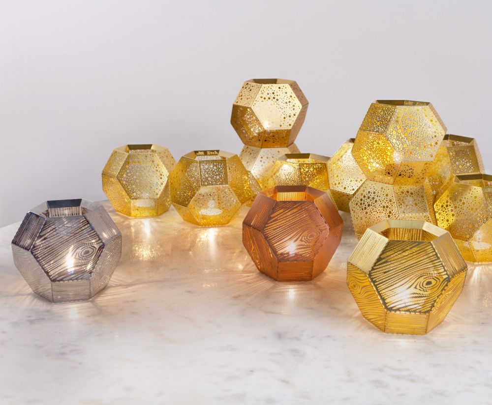 Etch je elegantní svícen, který po zapálení vnitřní svíčky vyzařuje měkké, ambientní světlo. Jeho jedinečný design je založen na precizně leptaných kovových plátech, které byly spojeny jako viktoriánské hračky z plechu. Díky technologii digitálního leptání kyselinou byl vzor Etch navržen tak, aby efektivně filtroval světlo a vytvářel mistrovskou hru stínů v okolí.