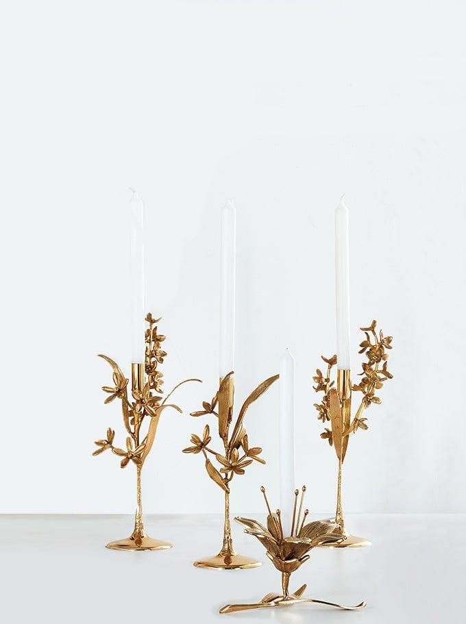 Svietník Lilly ve zlaté barvě je skutečným mistrovským dílem v oblasti užitkového umění. Zlatá socha dokonale doplní interiér ve stylu glamour, art deco, a také moderní klasiky. Tento model je vyroben z masivního mosazi, což zajišťuje, že je nejen efektní, ale také odolný.