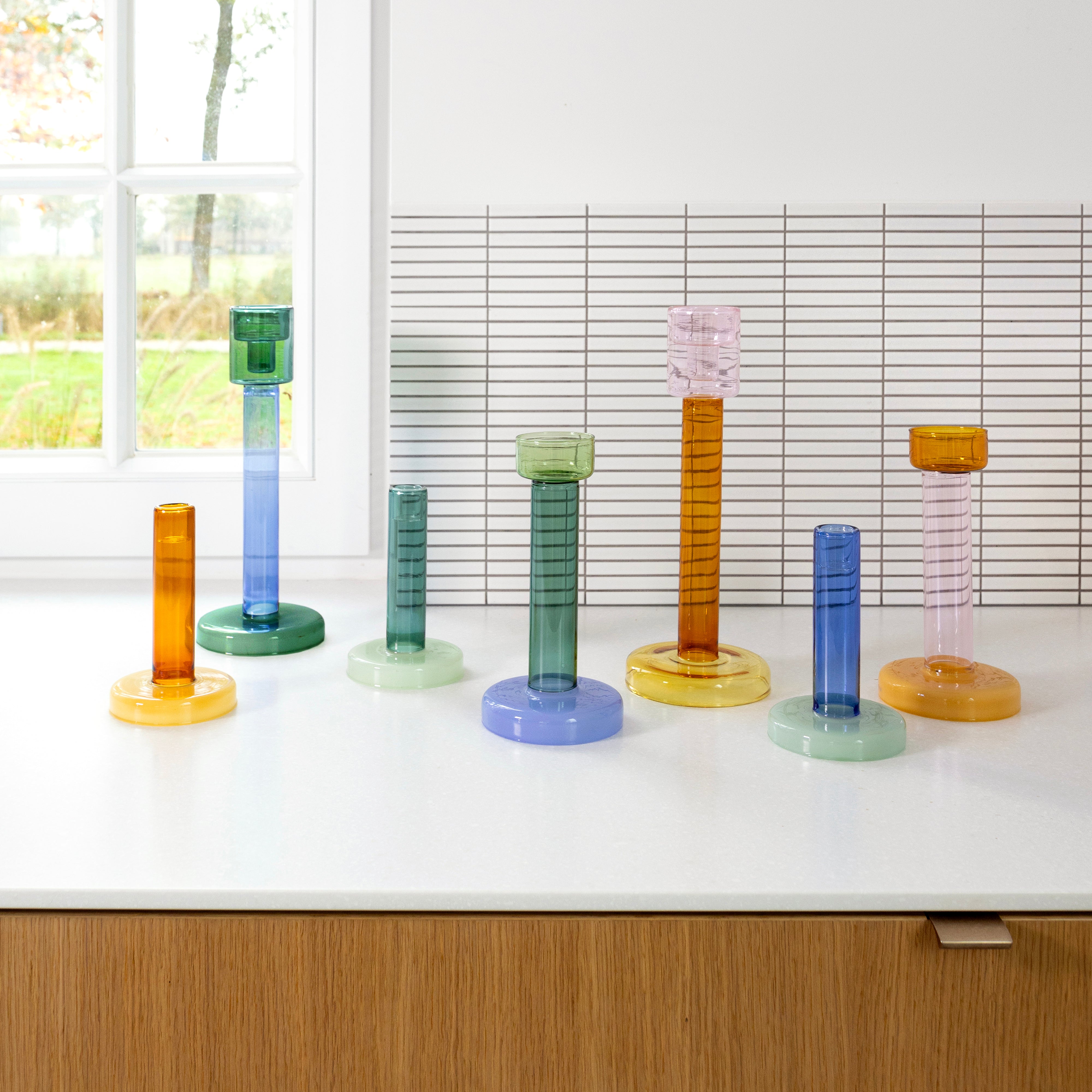 Świecznik Bole to designerska propozycja stworzona przez holenderskiego projektanta Lex Pott, która łączy nowoczesną formę z zabawą kolorem i światłem. Ten dekoracyjny świecznik został zaprojektowany z myślą o tealightach, a jego zróżnicowane wysokości i średnice w całej kolekcji pozwalają tworzyć efektowny, kolorowy krajobraz na stole lub komodzie. Szklany świecznik doskonale wpisuje się w nowoczesne i artystyczne wnętrza.