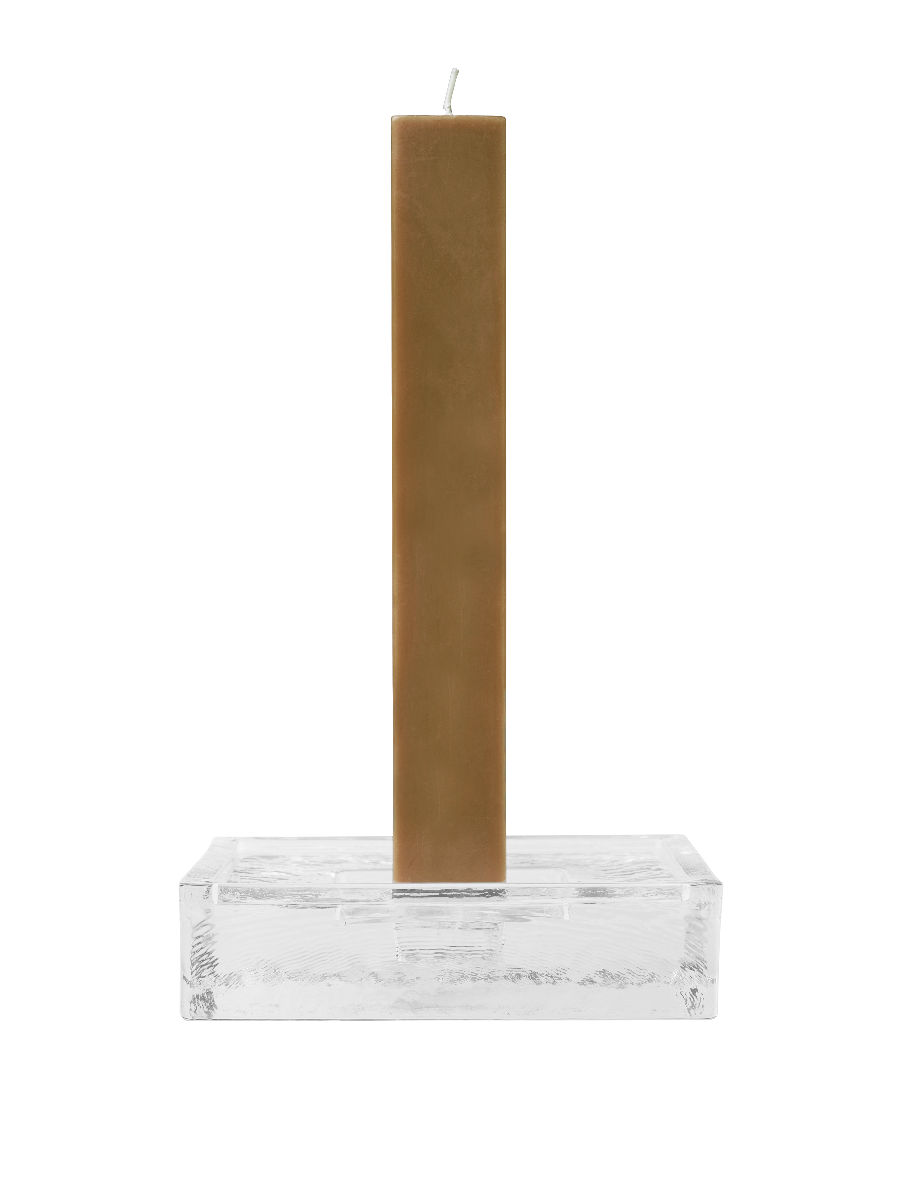 Świecznik Gradia w kwadratowej formie to wyjątkowe połączenie rzeźbiarskiej estetyki i praktycznego zastosowania. Wykonany z litego, ręcznie prasowanego szkła, zachwyca swoją masywnością, przezroczystością i subtelną, wyczuwalną fakturą powierzchni. Dzięki stopniowanemu wnętrzu świecznik pasuje do świec o różnych rozmiarach, od małych, przez tealighty, aż po duże świece typu pillar. Jego czysta forma i jasność szkła pięknie podkreślają blask płomienia, tworząc we wnętrzu nastrojowe, przytulne światło.