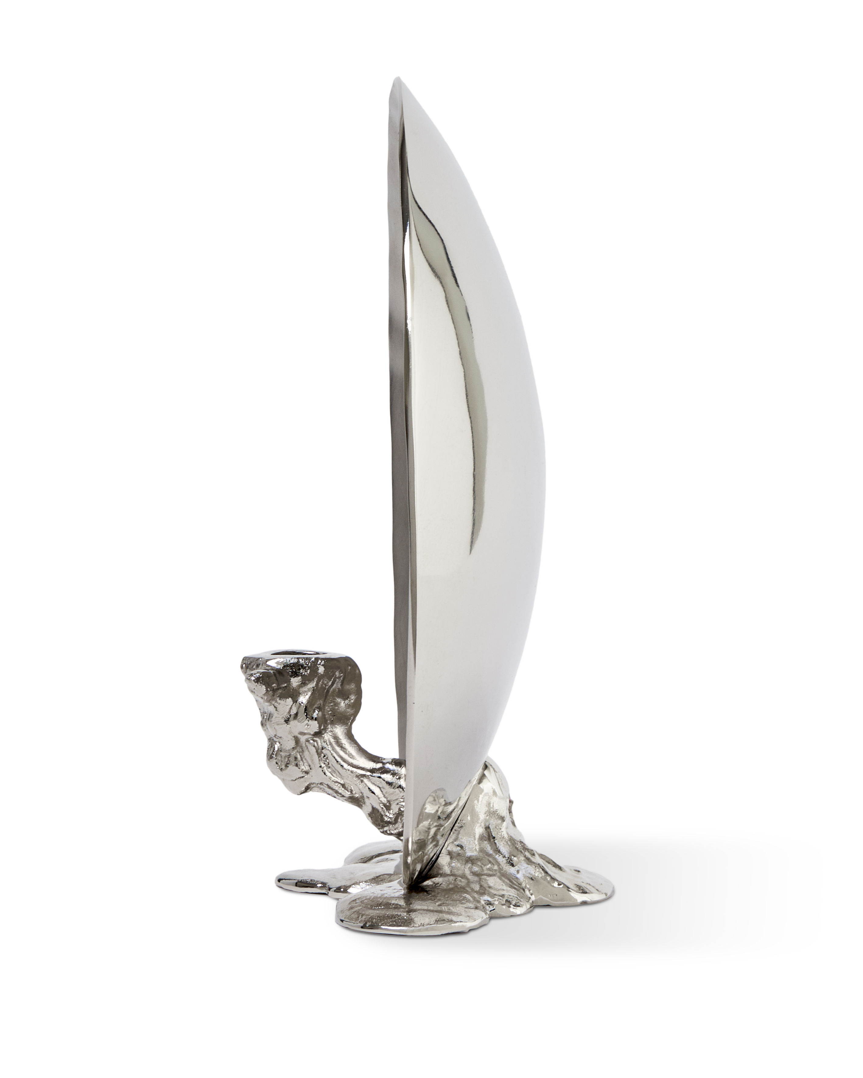 Świecznik Spherical Drip to obiekt, który wymyka się jednoznacznym definicjom i właśnie w tym tkwi jego siła. Na granicy rzeźby, lustra i użytkowego dodatku, świecznik przyciąga wzrok płynną, niemal stopioną formą, która zdaje się być zatrzymana w czasie. Gra światła i odbić sprawia, że płomień świecy staje się integralną częścią kompozycji, a świecznik nieustannie zmienia swój charakter w zależności od otoczenia i pory dnia.