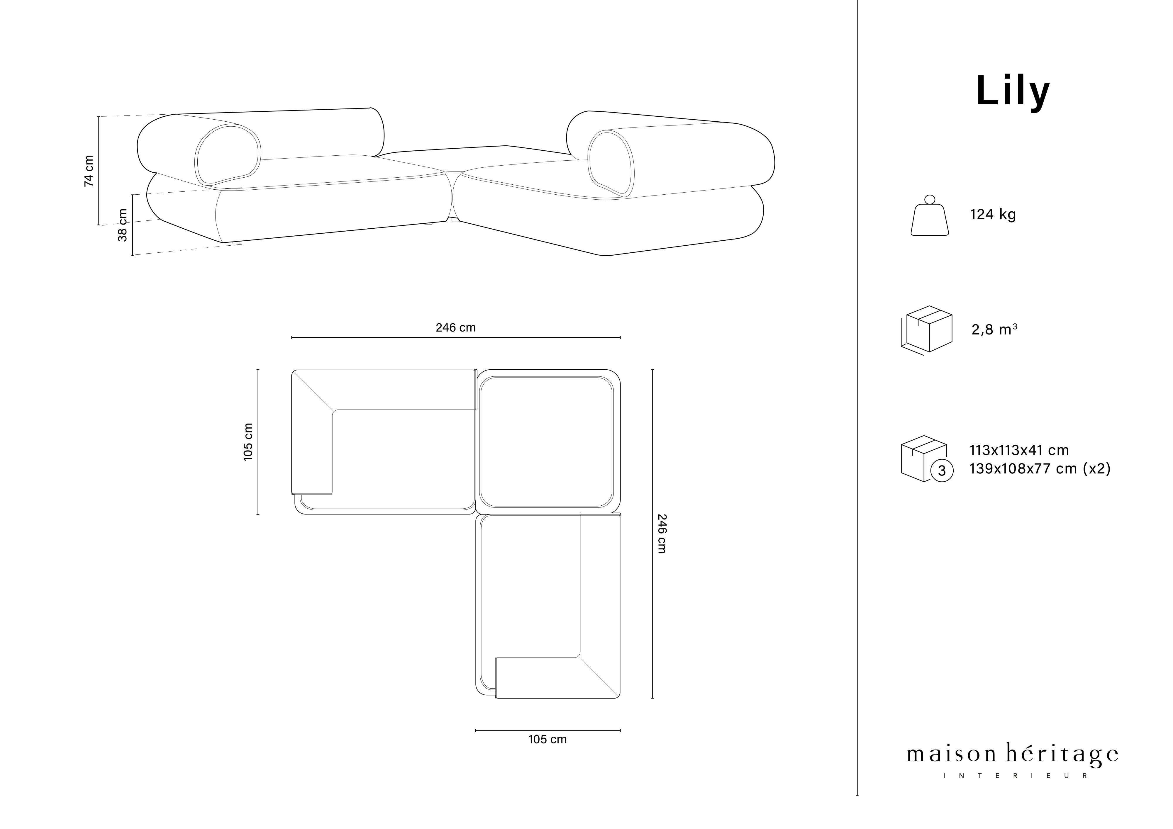 Hluboké sedáky jsou pružné a mimořádně pohodlné. Jemné prošívání a švy zdůrazňují klasický charakter designu. Díky nízkému a rozloženému profilu rohový gauč Lily vytvoří v interiéru kousek útulnosti a tepla. V kolekci jsou k dispozici různé kombinace pohovek a rohových gaučů, stejně jako lehátko a velký puf, díky nimž lze vytvořit jedinečný interiér.