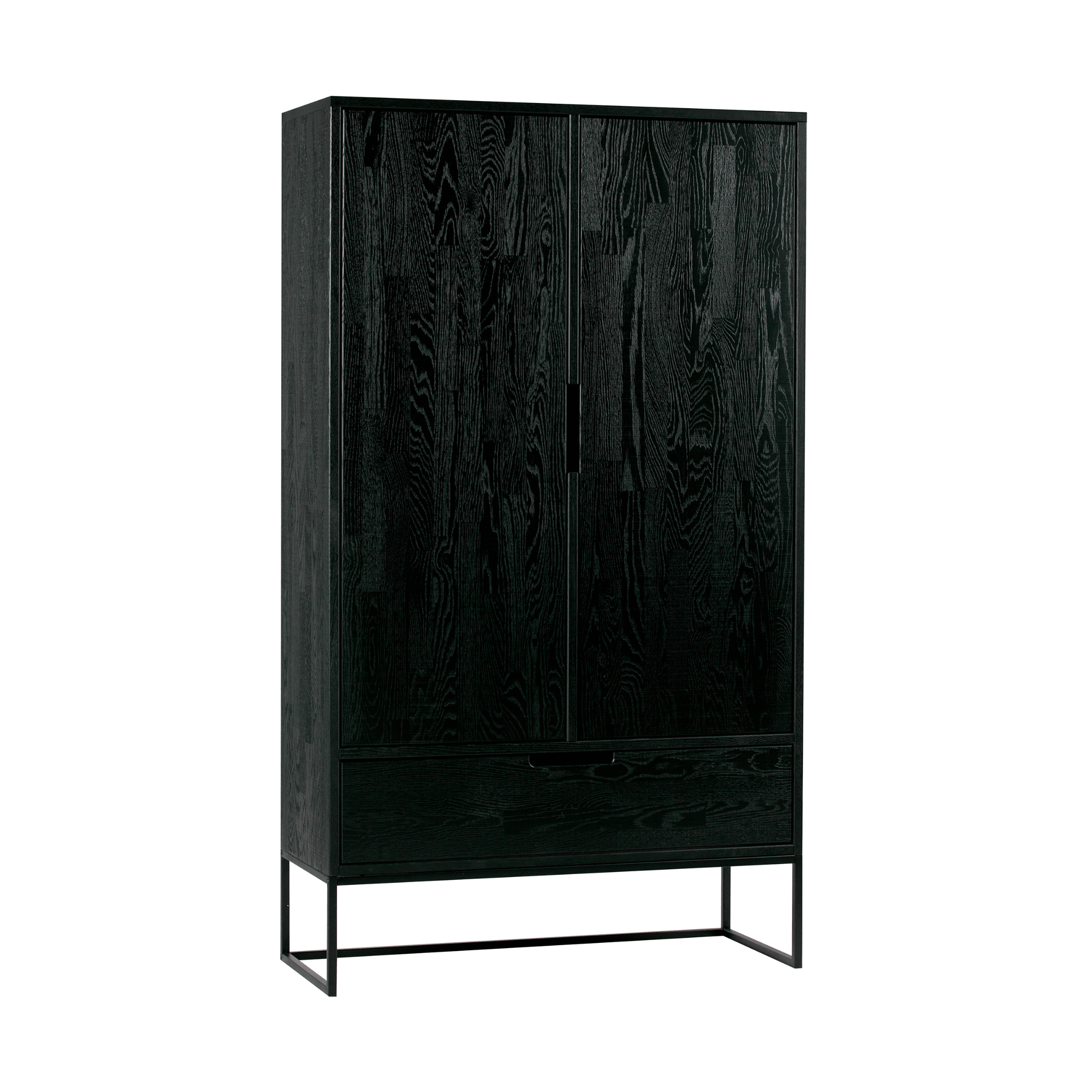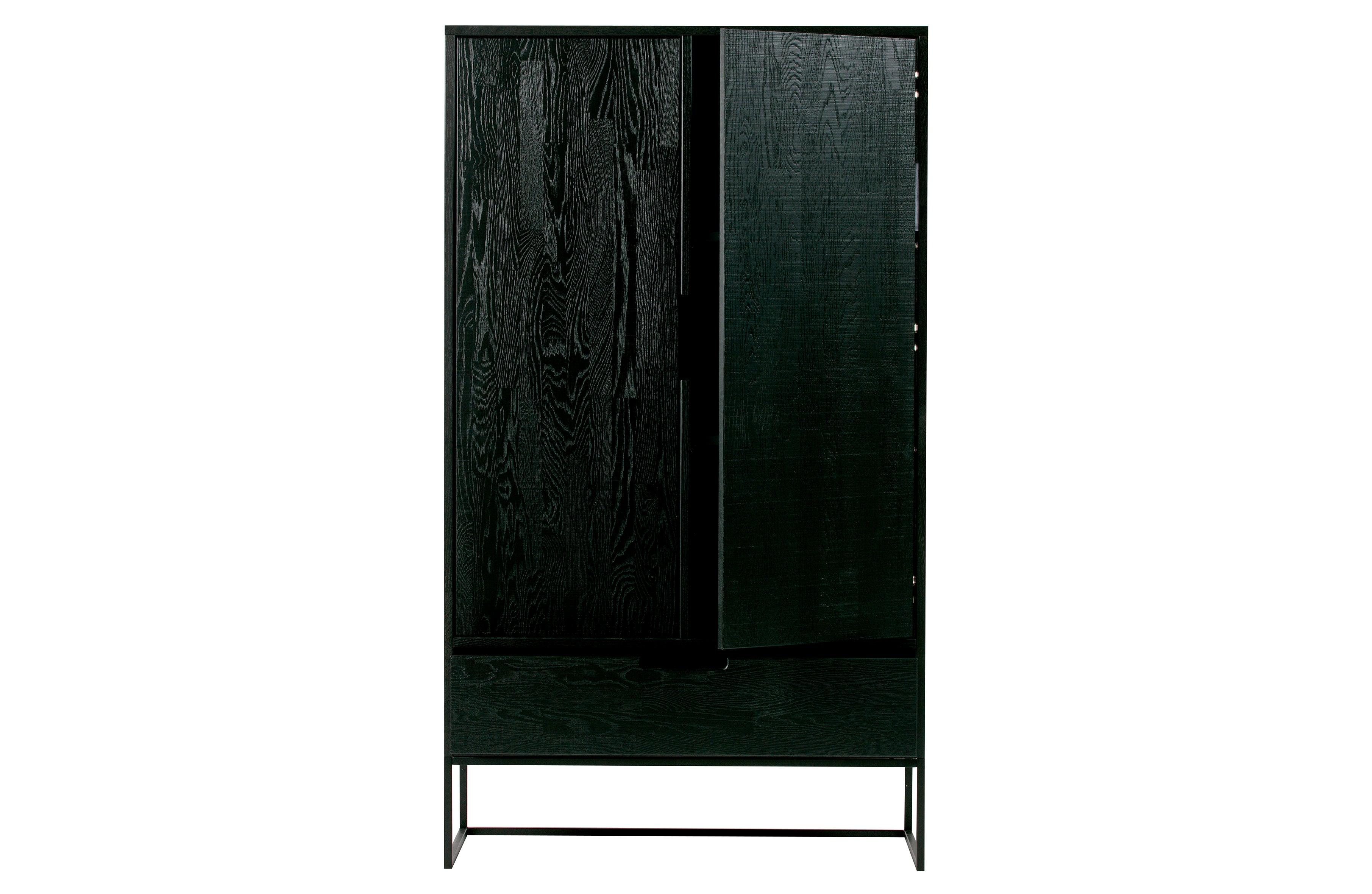 Czarna szafa Silas posiada dwie duże szafki oraz szufladę, które oferują dużo miejsca do przechowywania różnych przedmiotów, od ubrań, po pościel czy dodatki. Drzwi szafy zostały zaprojektowane tak, aby zapewnić łatwy dostęp do przechowywanych przedmiotów, jednocześnie zachowując elegancki wygląd.