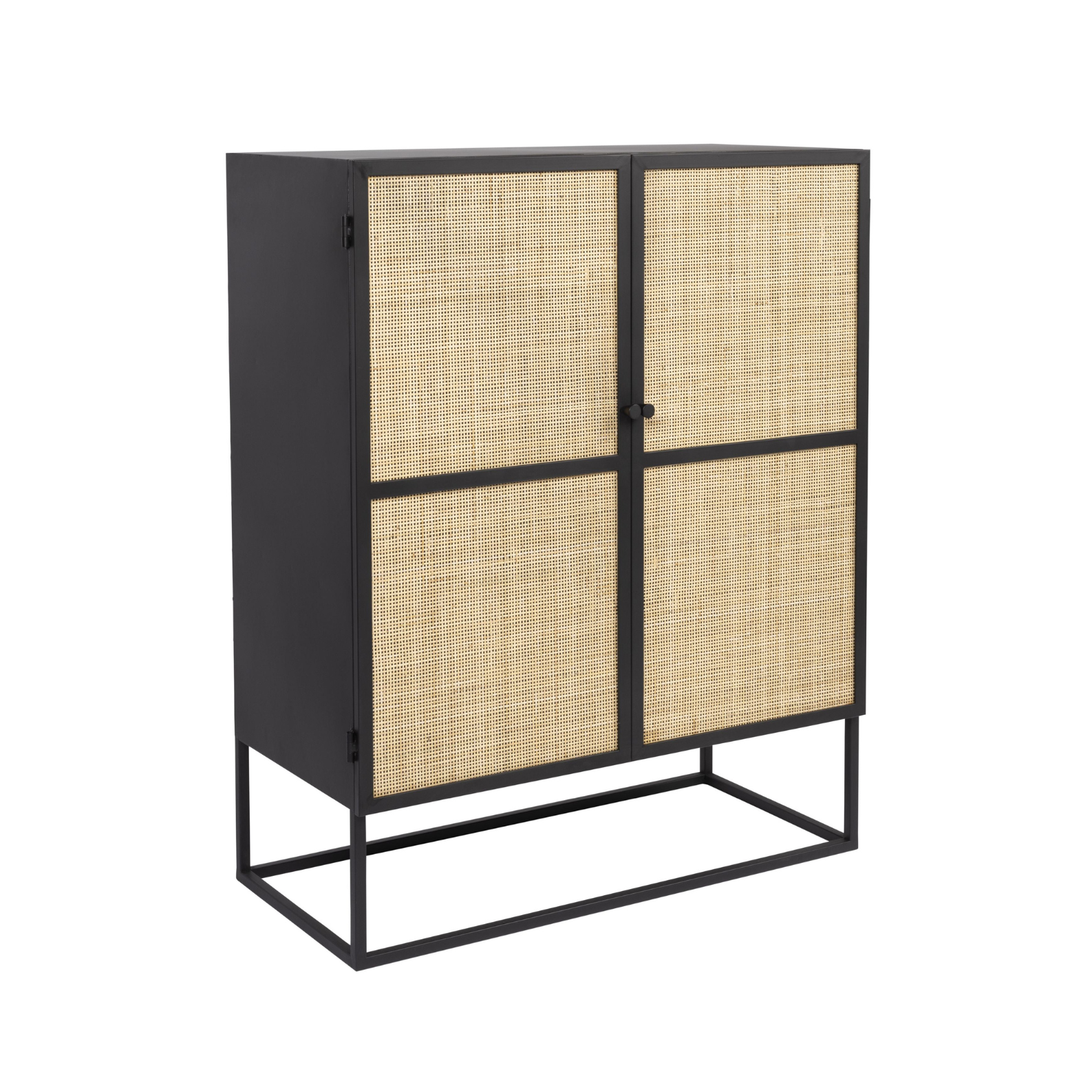 Skříňka 2-dveřová GUUJI černá s ratanem