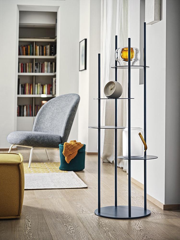 Regał Circle wykonana jest w całości z lakierowanego metalu. Ten element konstrukcyjny nadaje nowe spojrzenie na akcesoria meblowe. Circles to niezwykle oryginalny sposób na utrzymanie najważniejszych rzeczy w zasięgu wzroku, nie zajmując przy tym zbyt wiele miejsca. Ten kolumnowy totem z metalowej rurki ma 4 okrągłe półki z blachy. Dopasowane do kolumny okrągłe półki zostały umieszczone na różnych wysokościach, a pręty są dostępne w różnych wysokościach, tworząc efektowny wizualnie układ.