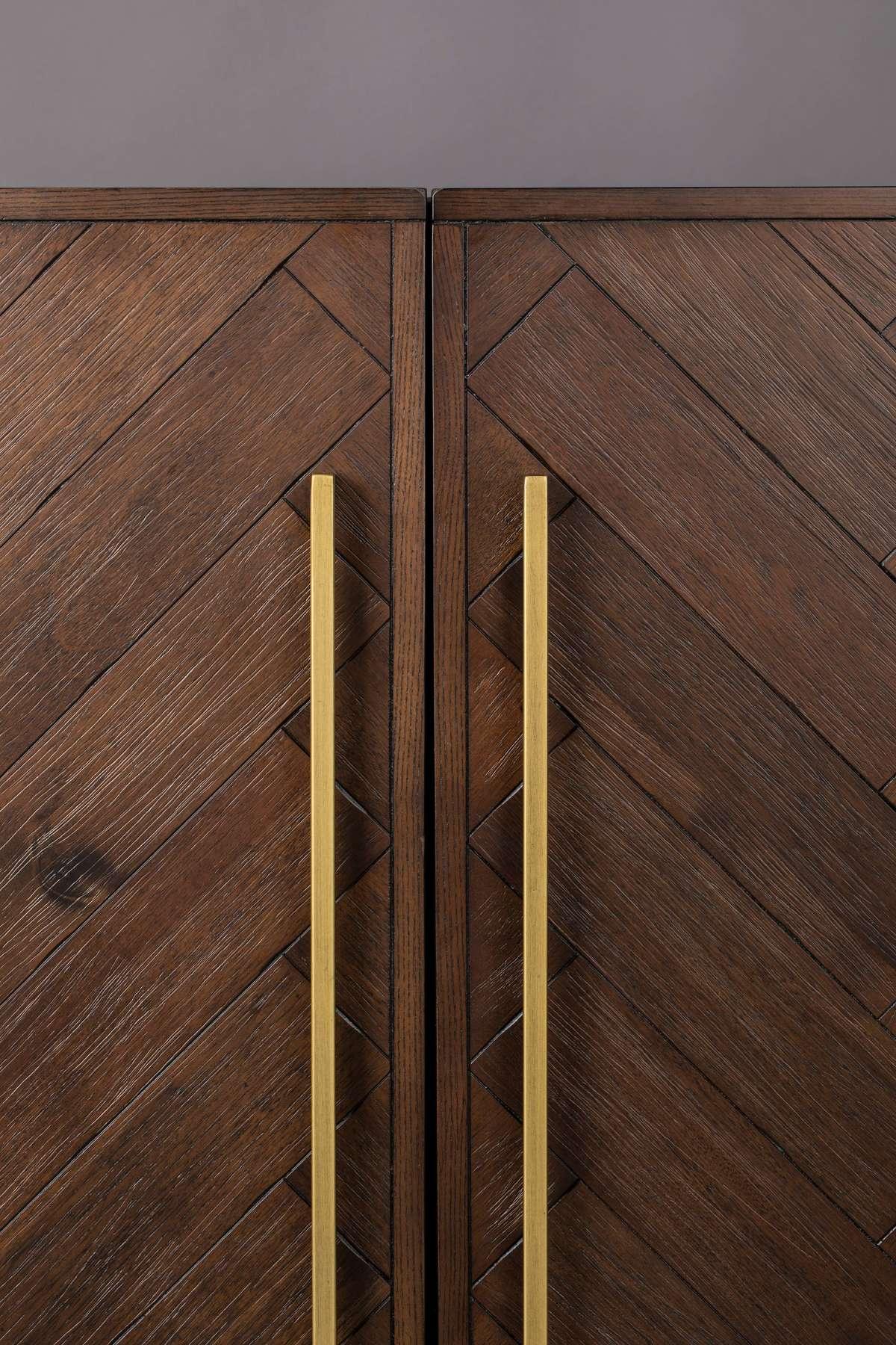 Celá konstrukce je umístěna na ocelovém rámu, který byl lakován práškovou metodou v zlatobronzové barvě. Komodu zdobí stylové úchyty ve starožitném mosazném provedení. Dřevěná skříňka Class bude zajímavým doplňkem téměř každého interiéru.