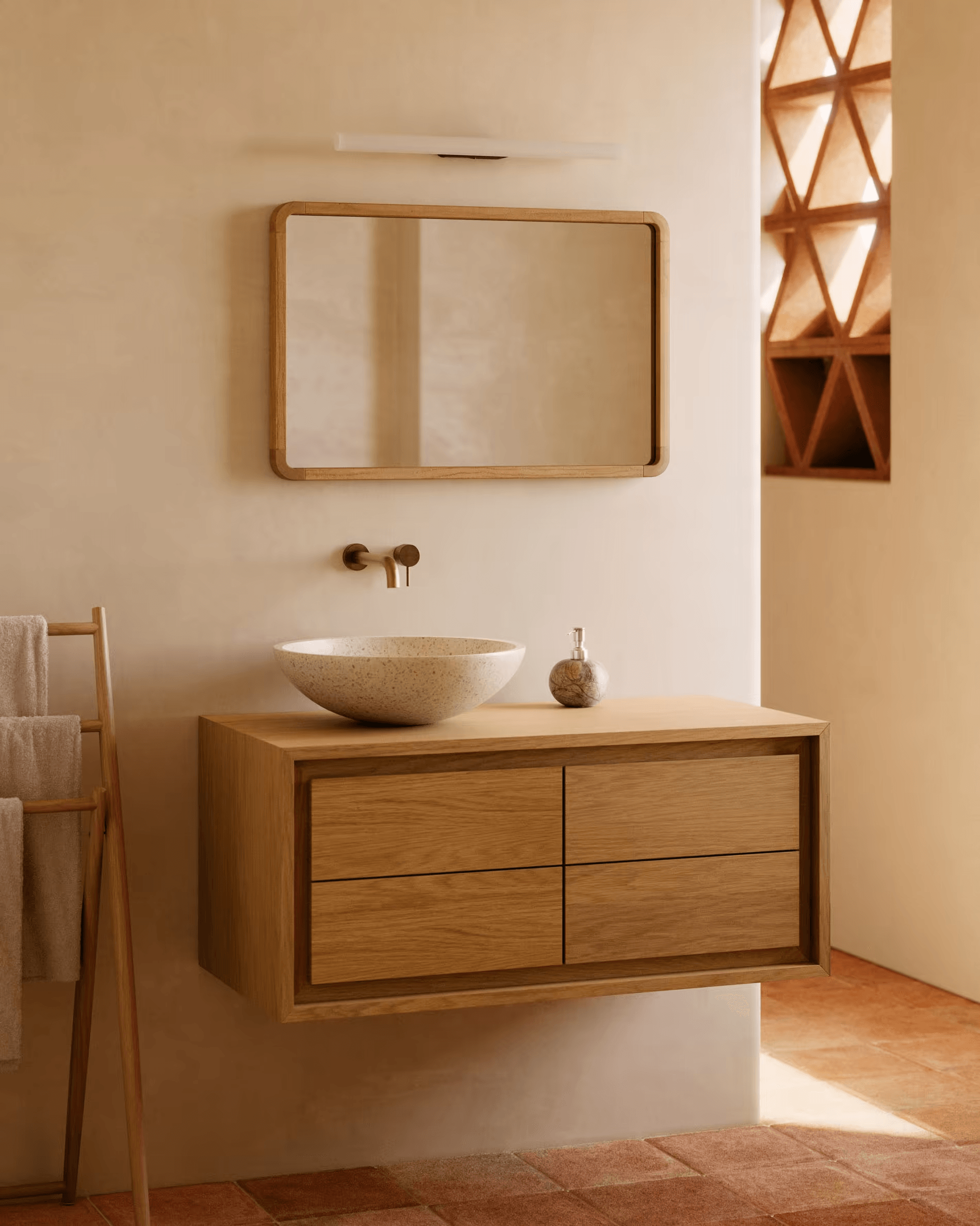 Kolekce Kenta byla vyrobena z odolného proti vlhkosti masivního teakového dřeva, takže si můžete užít relaxaci v orientálním a designovém spa, aniž byste museli opustit domov. Ukažte, že i vaše koupelna může být stylová.