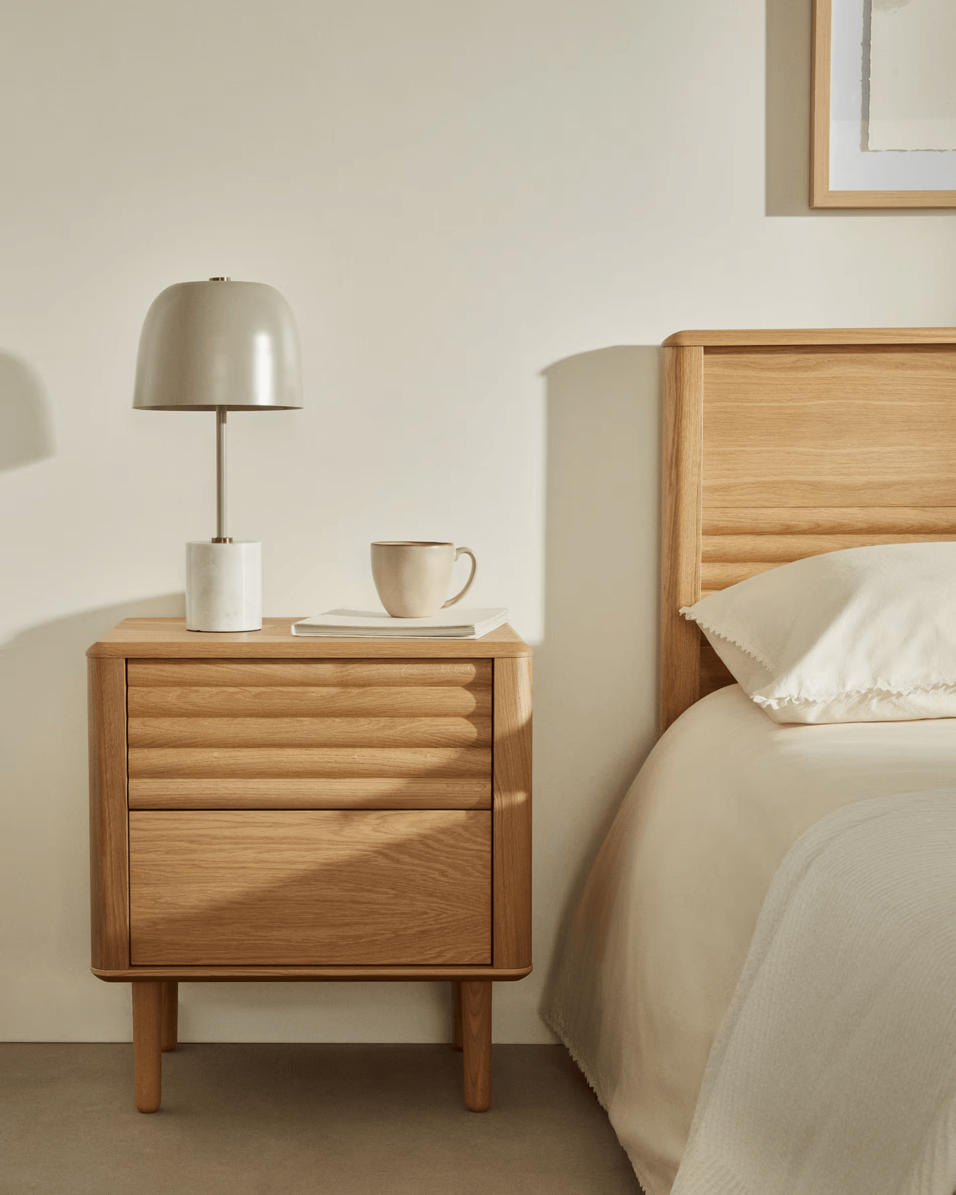 Lenon je synonymem kvality. Nábytek vyrobený v Evropě z masivního dřeva a ekologické dubové dýhy se vyznačuje výjimečným designem, který se projevuje ve všech prvcích, jako jsou zaoblené hrany a reliéf dveří.