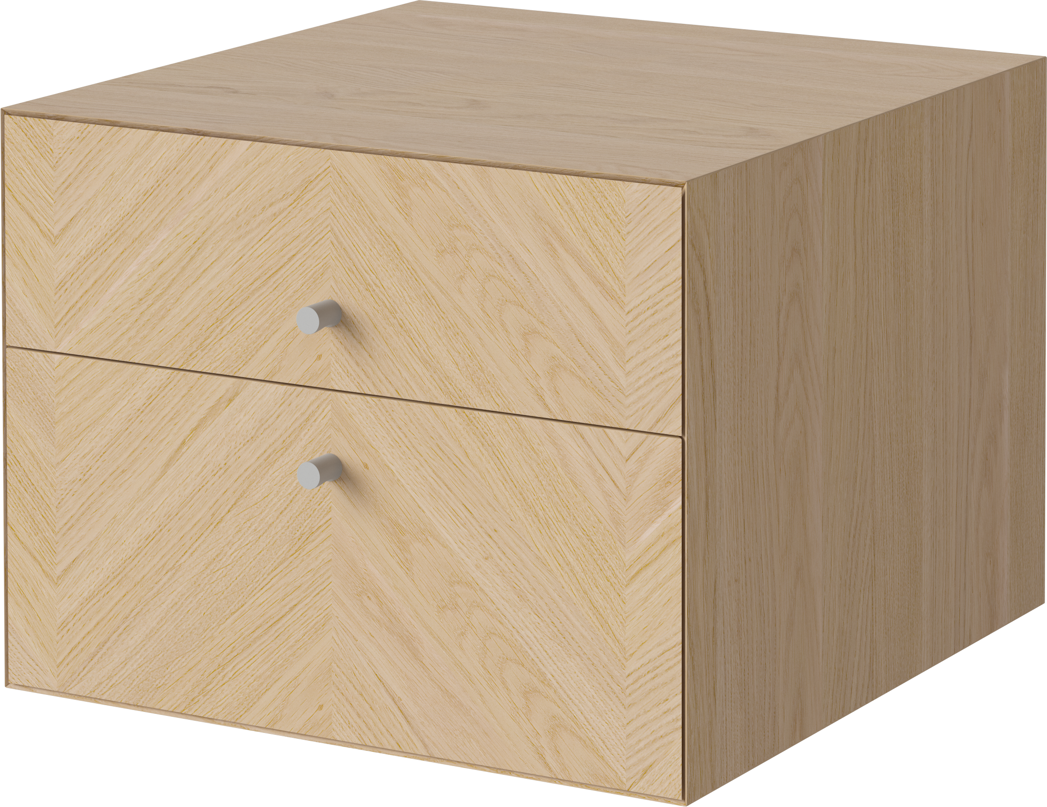 Noční stolek Luxe je spojení funkčnosti a elegance, navržené dánským designérem Michaelem H. Nielsenem. Charakteristický vzor rybí kosti na čelních plochách přitahuje pozornost a jemně odráží světlo, dodávající nábytku výjimečný charakter. Kompaktní forma a minimalistický design zajišťují, že stolek se skvěle hodí do různorodých interiérů, a systém soft-close poskytuje komfort při používání. Možnost montáže na kovový rám nebo přímo na zeď přidává univerzálnost a umožňuje přizpůsobení stolku individuálním potřebám.