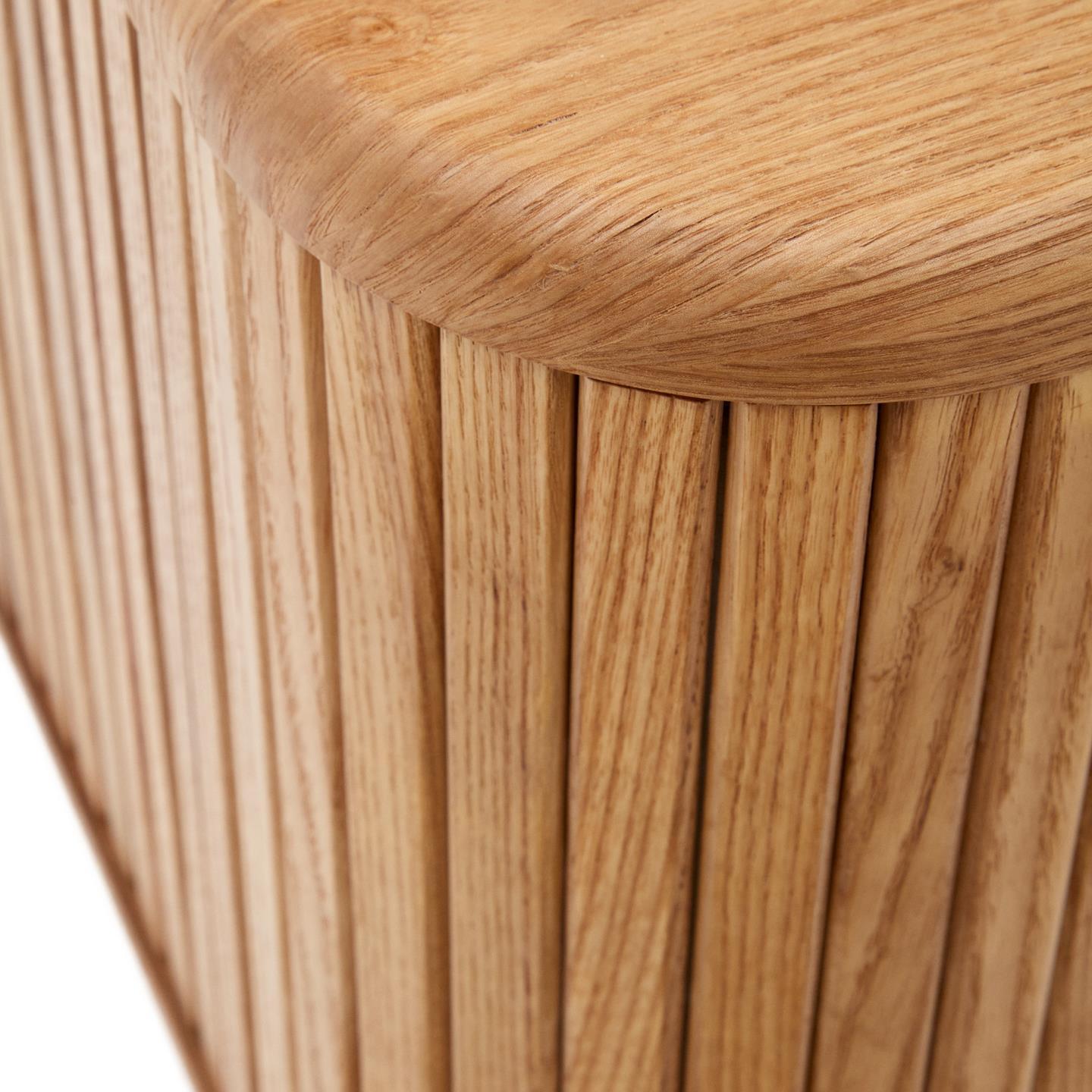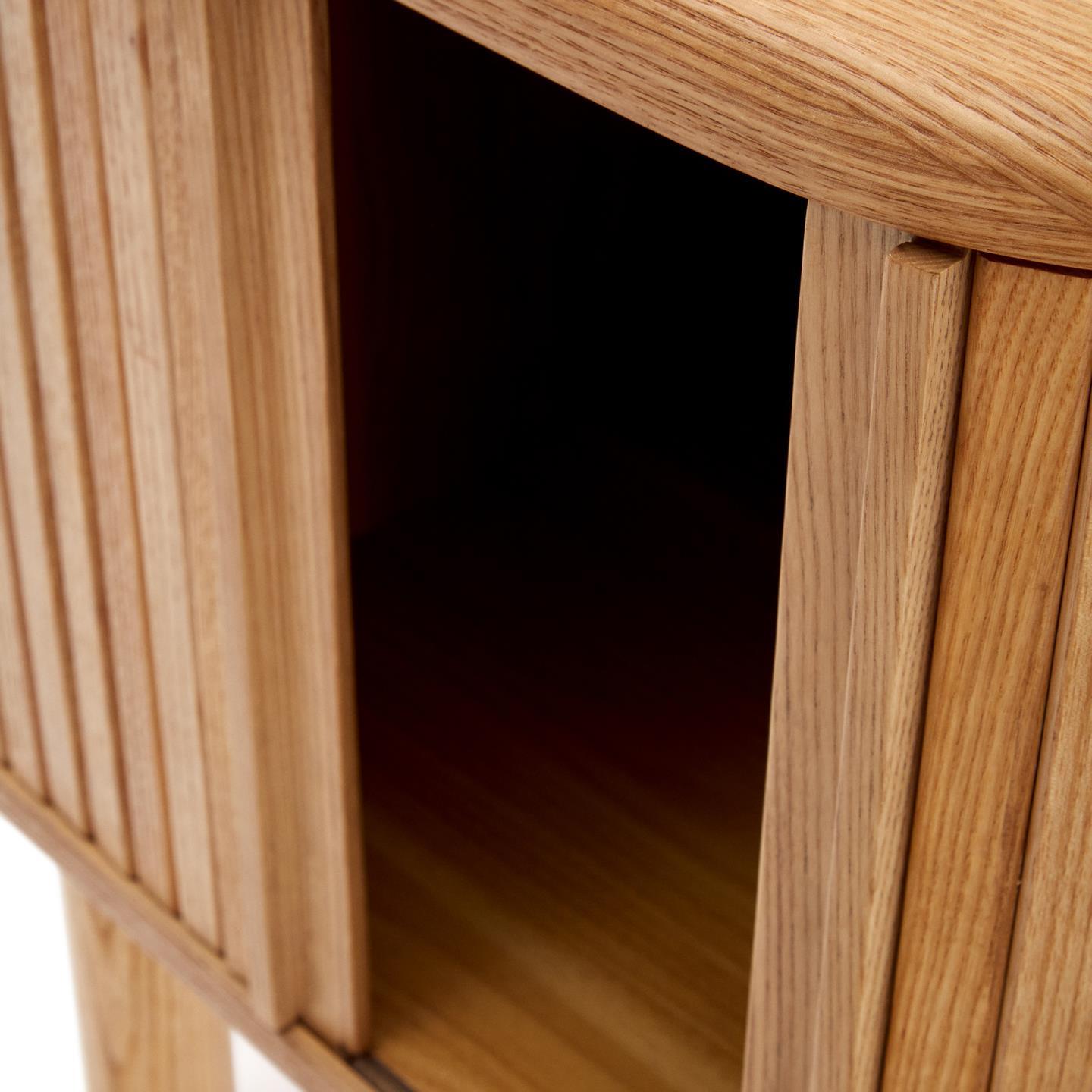 Zespół Kave Home stworzył kolekcję Mailen o nowoczesnym wzornictwie o zaokrąglonych kształtach. Meble wykonane są z okleiny jesionowej, z przesuwanymi drzwiami z drewnianymi listwami, nadającymi kolekcji wyrazisty charakter.